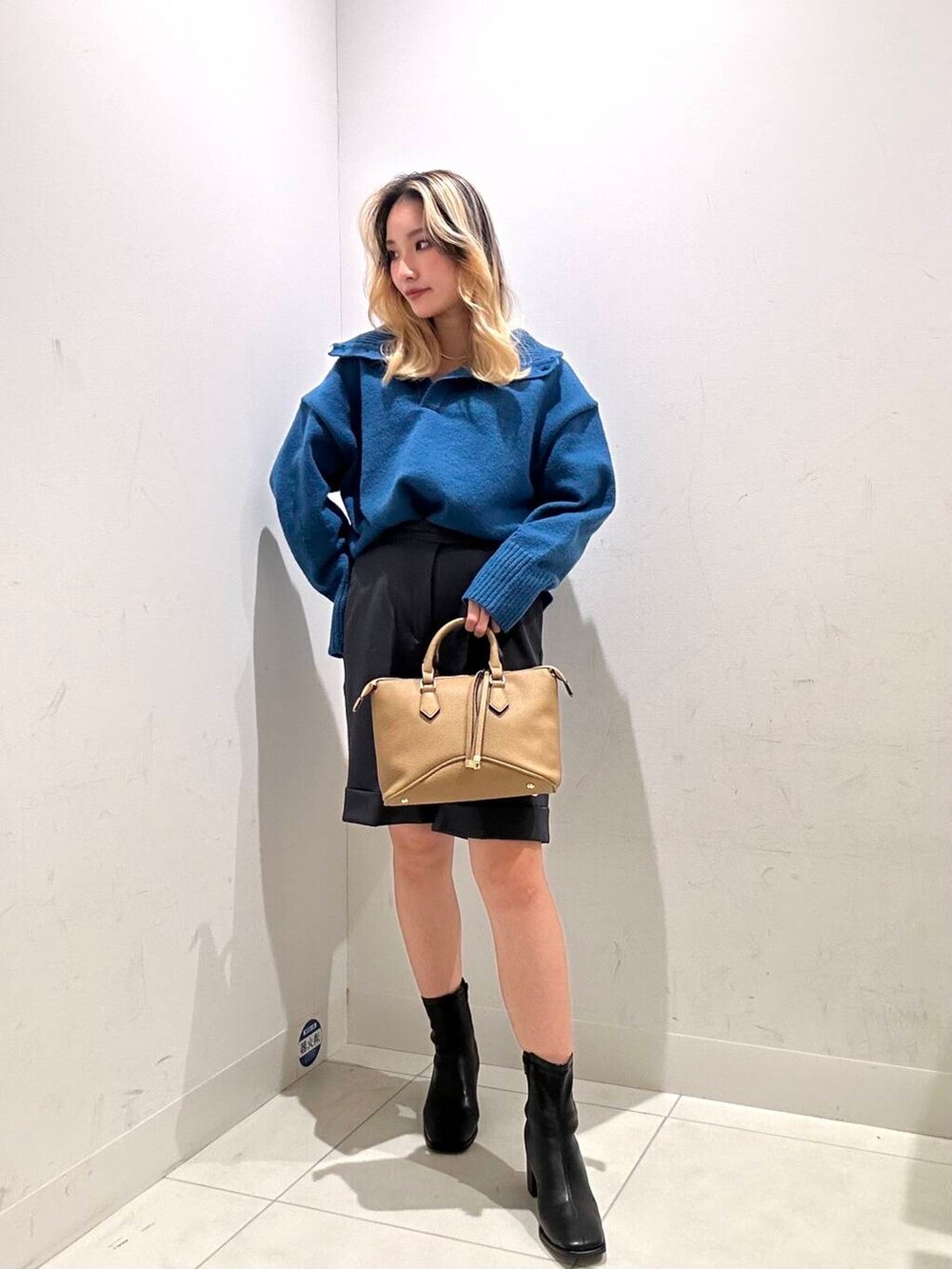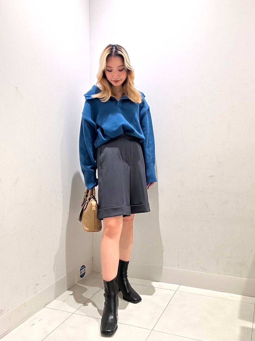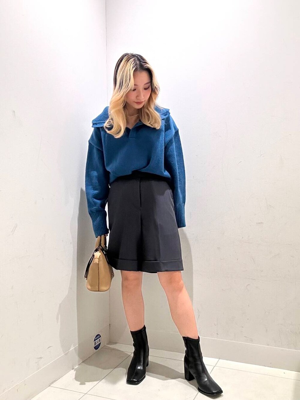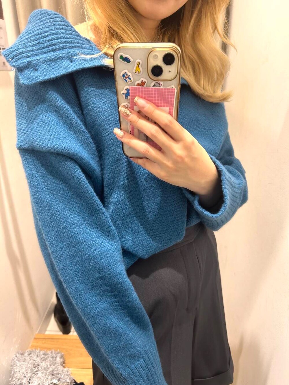 前後2WAYで着られるニットはボタンを閉めてタートルネックにしたり、ボタンを開けて襟みたいにしたり、中にレイヤードもできます!