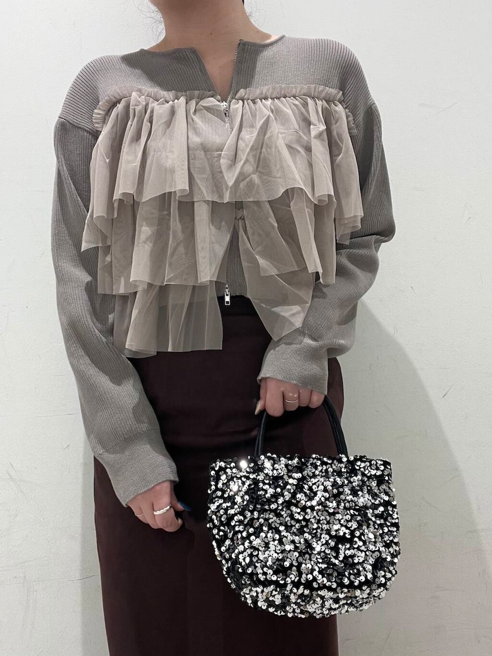 SENSE OF PLACE『洗濯可』ダブルジップフリルニットカーディガン