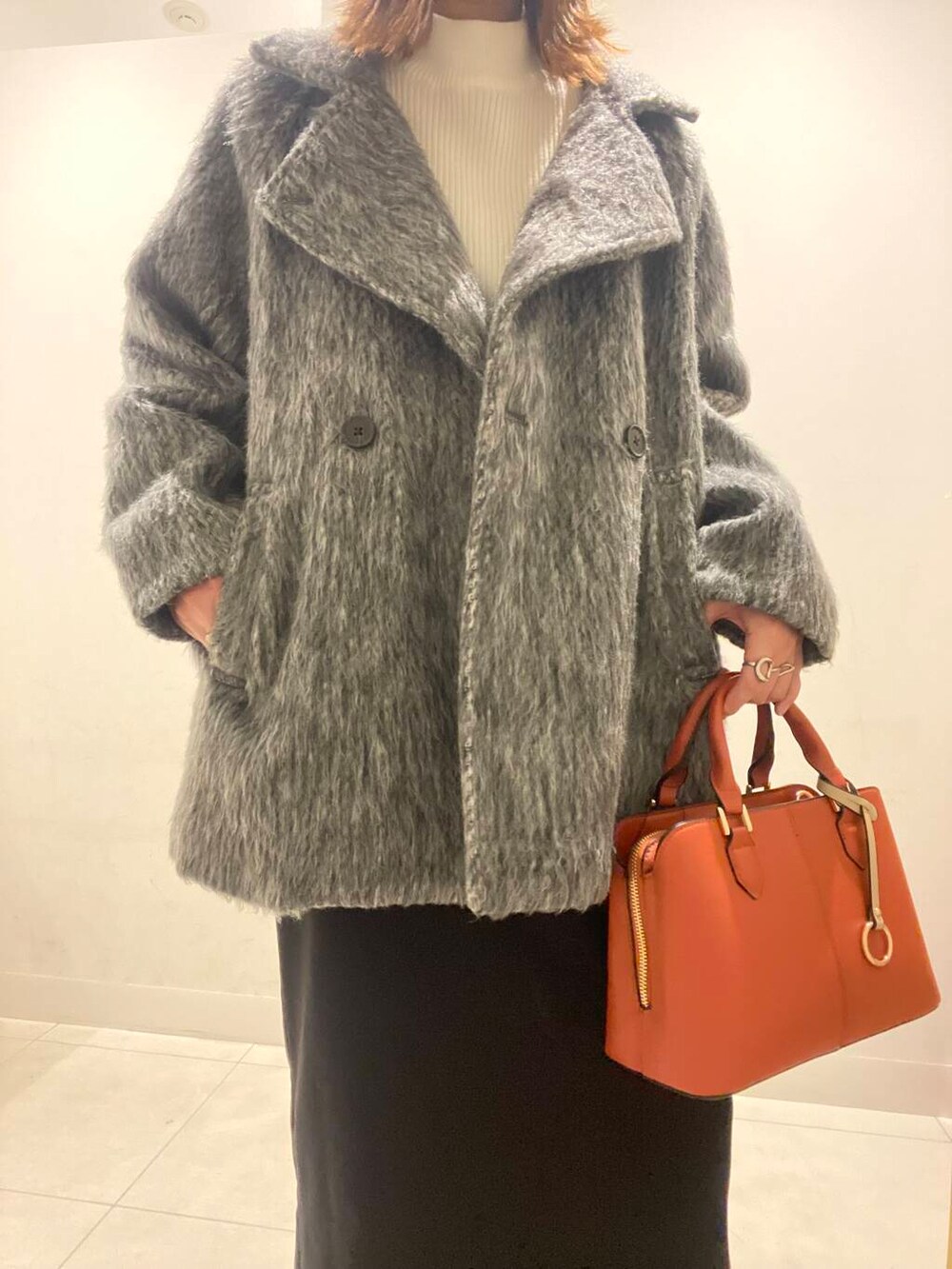 ルーズなシルエットがかわいいシャギー素材のコートは、袖口もゆったりと余裕があり厚手のニットも着ることができちゃいます!