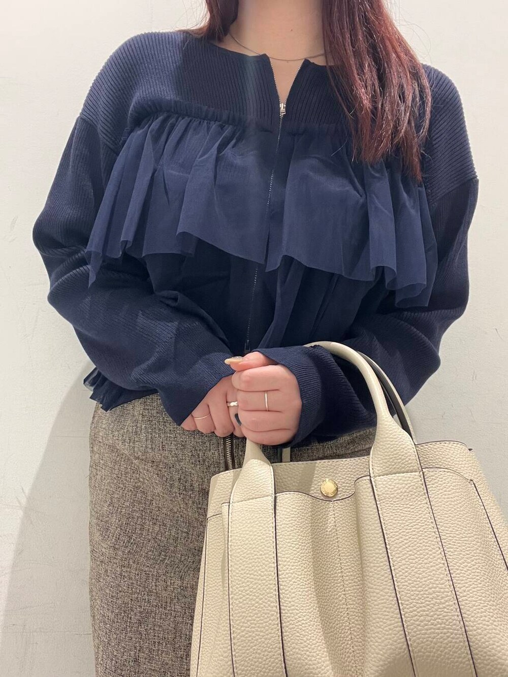 SENSE OF PLACE『洗濯可』ダブルジップフリルニットカーディガン