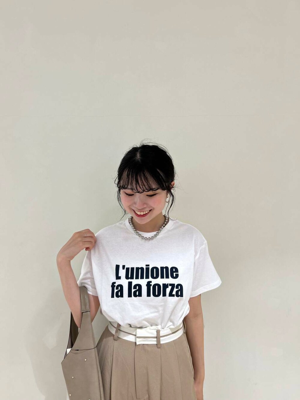 シンプルなロゴTにスリットパンツをあわせてみました♡
