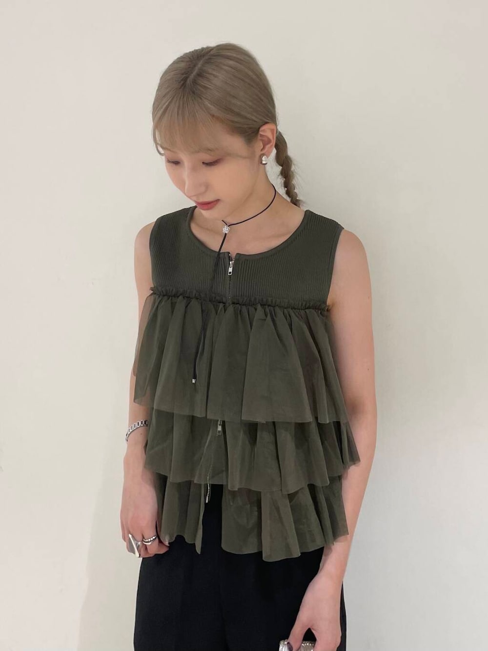 ノースリーブのニットはフリルのデザインで一枚でも主役になるアイテムです♡