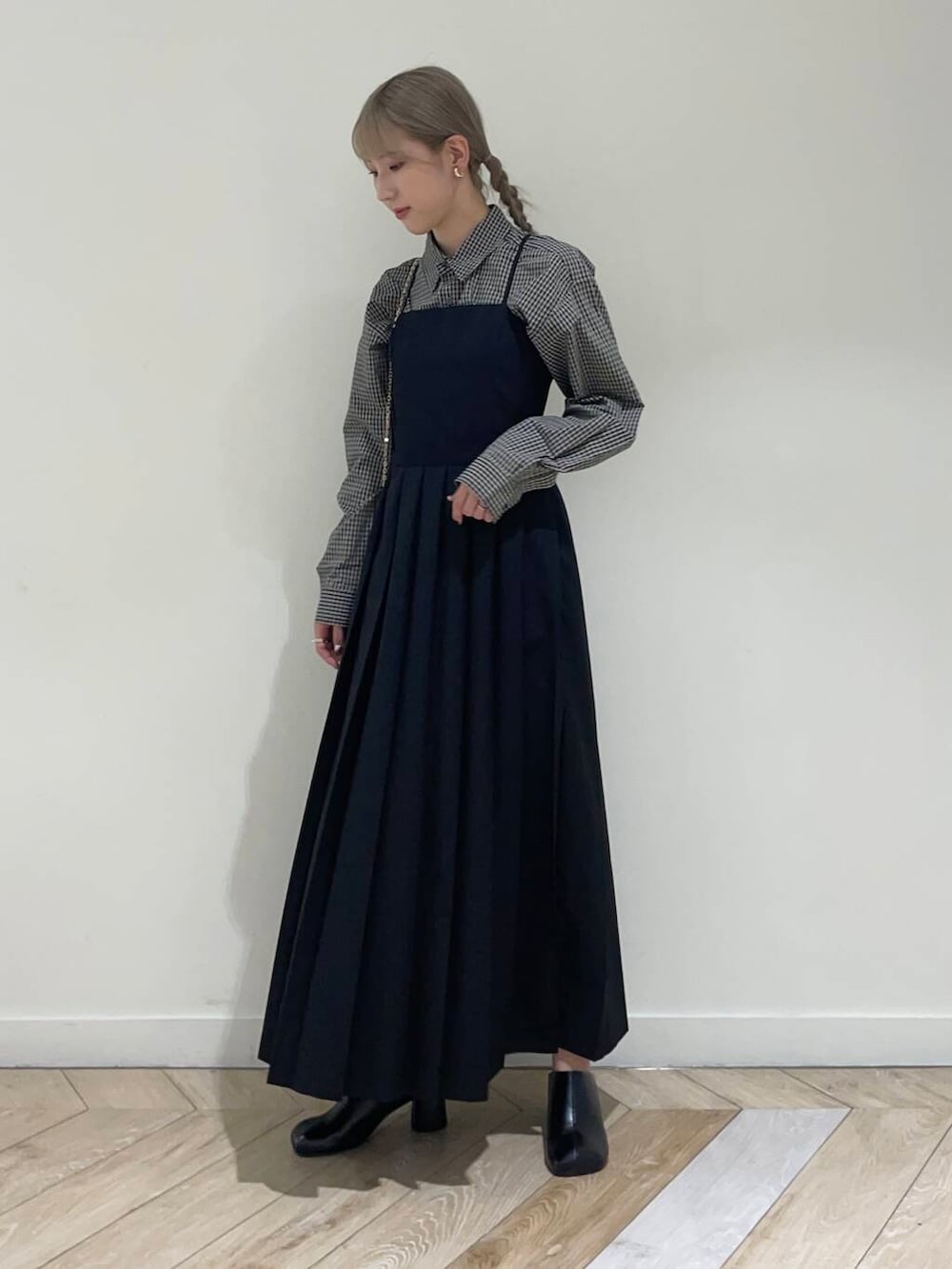 こちらのワンピースはセールアイテムですが、生地感がスーツのような生地なので季節問わず使いやすいです♪