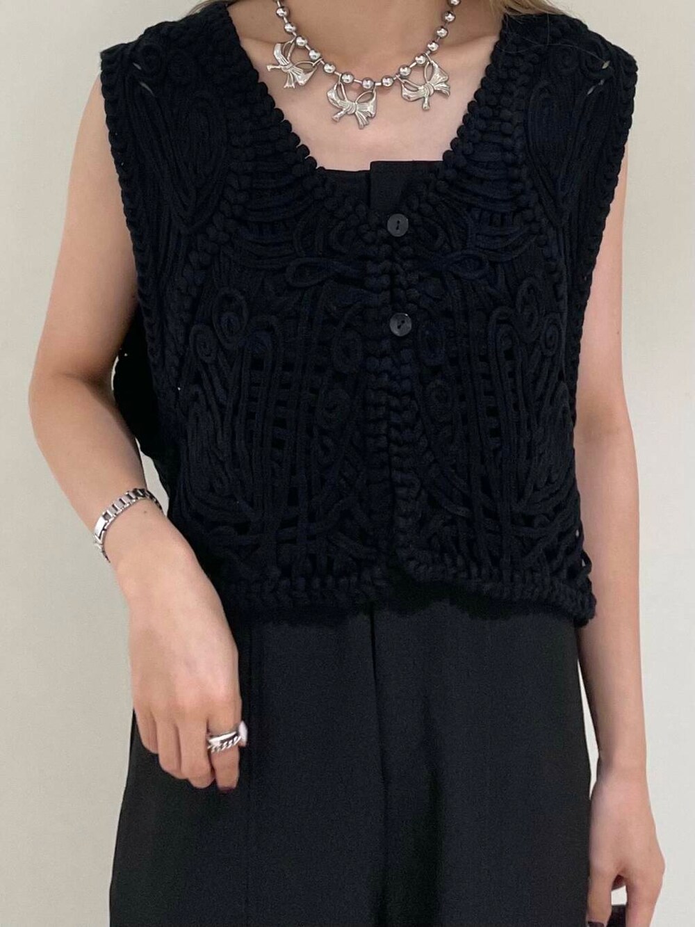 今回はコードデザインのベストをメインにオールブラックな夏コーデをしてみました♪