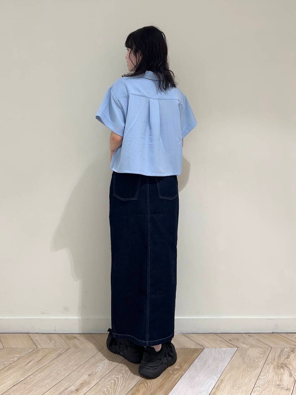 スカートは丈が長めなのでSサイズを着用しました!162.5センチでSサイズを履くとこんな感じです。
