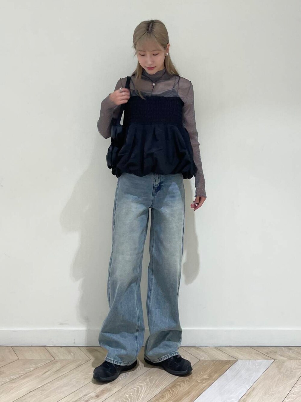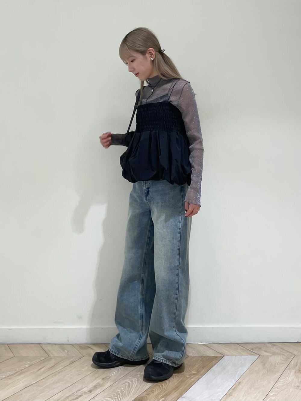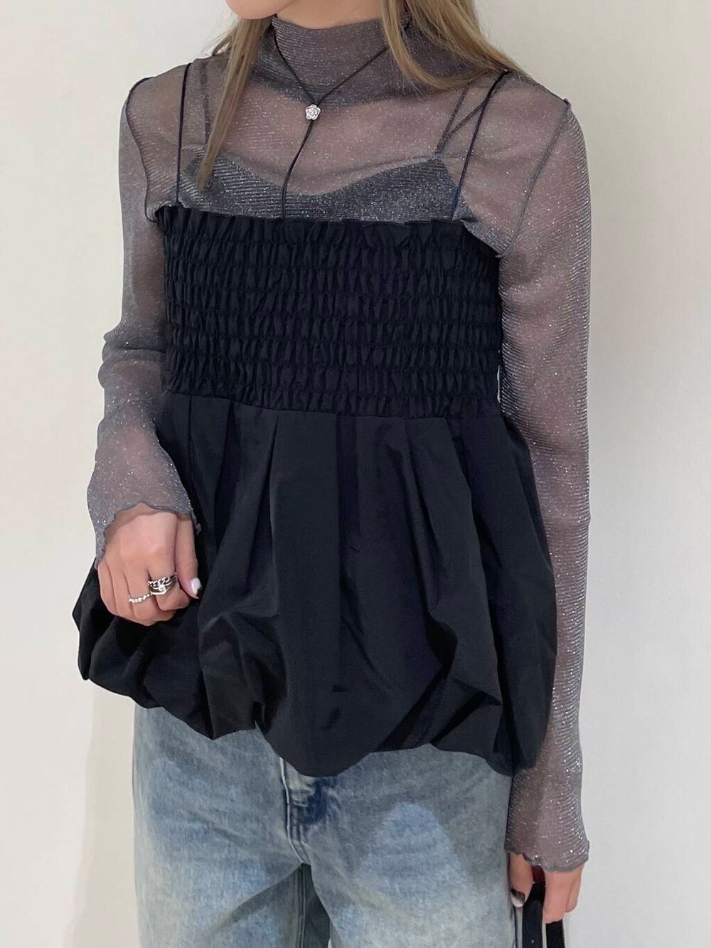 トレンドのバルーンデザインのビスチェは、コーデにプラスするだけでトレンド感ばっちりなコーデになります◎
