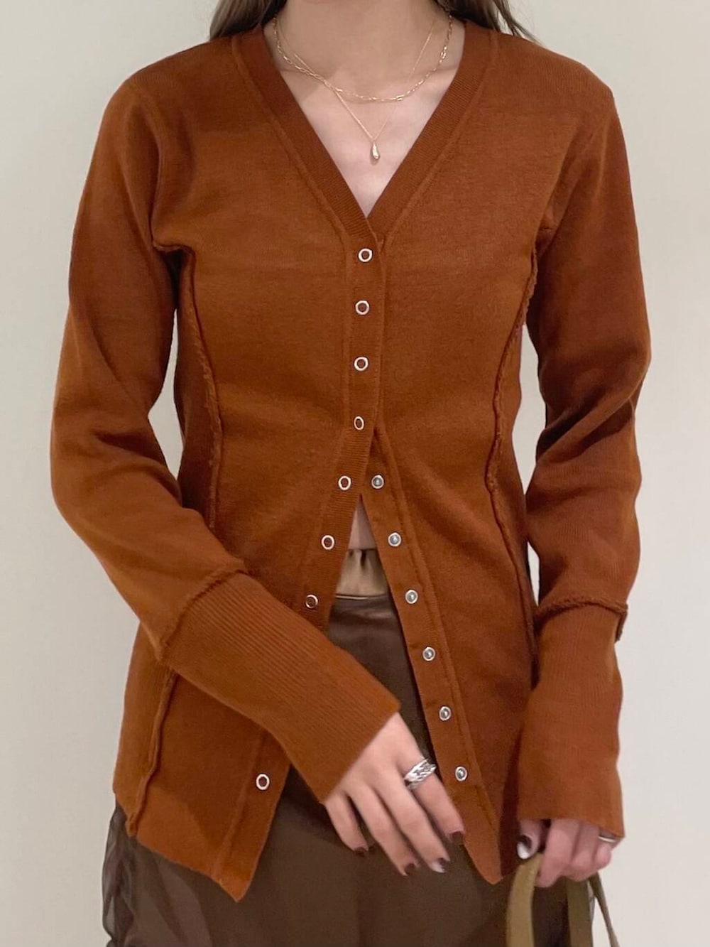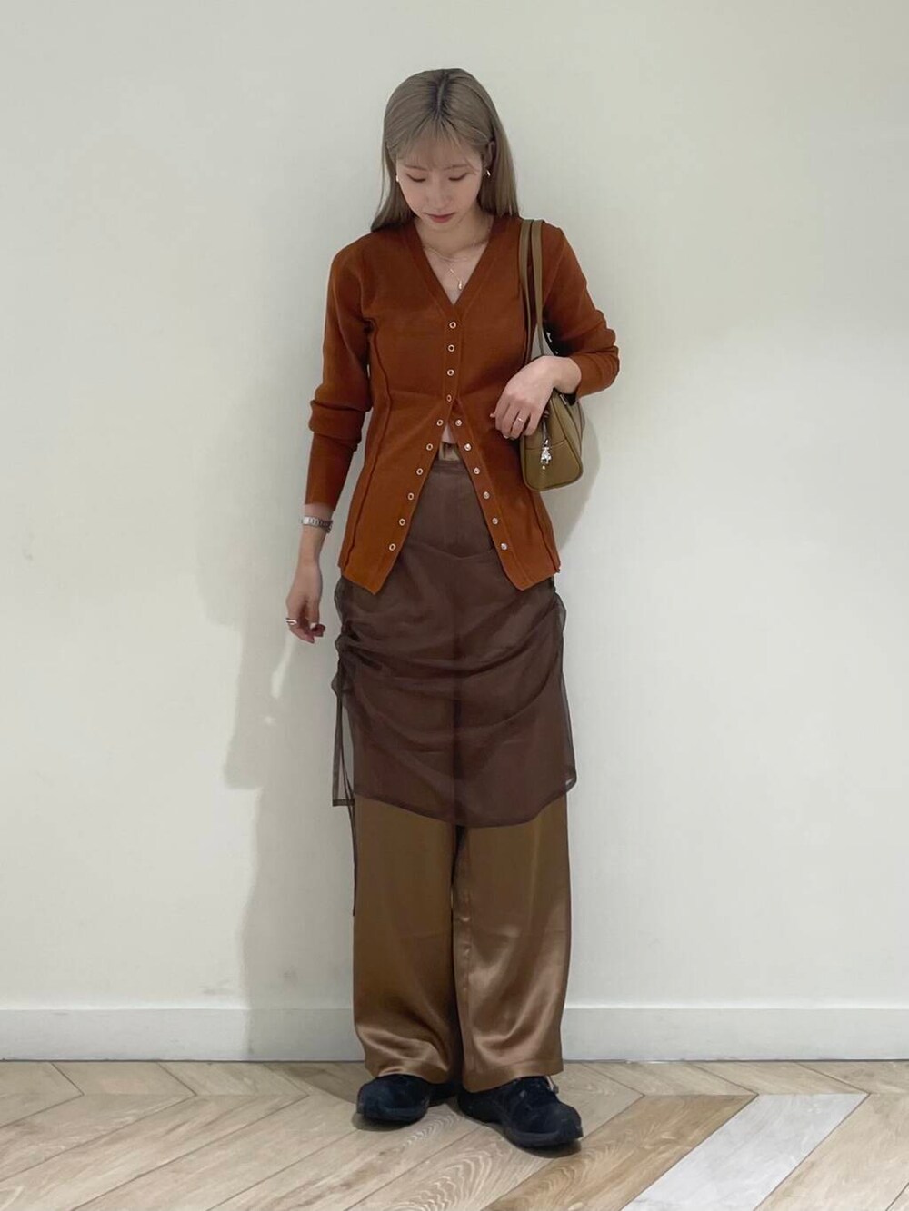 こちらのカーディガンが見た目よりもサラッとした着心地で、早めの時期から着用できるアイテムです!