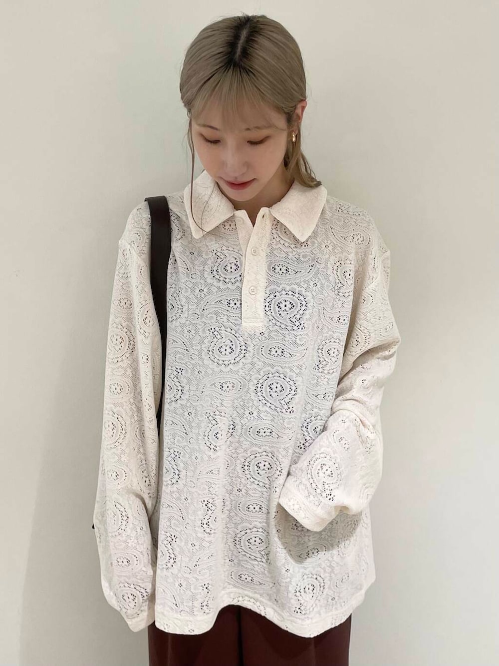 ポロシャツでカジュアルながらも、レースのデザインでキレイめ要素プラスされかっこよく決まります◎