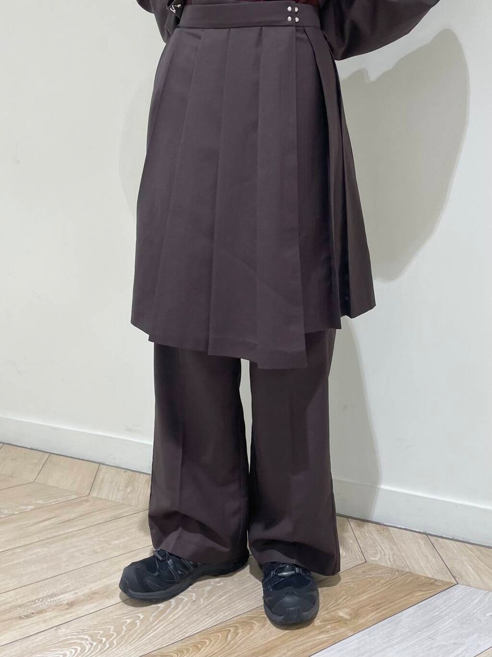 スカートとパンツがセットになっており、一緒に着るだけでトレンドのレイヤードスタイルが完成します♬