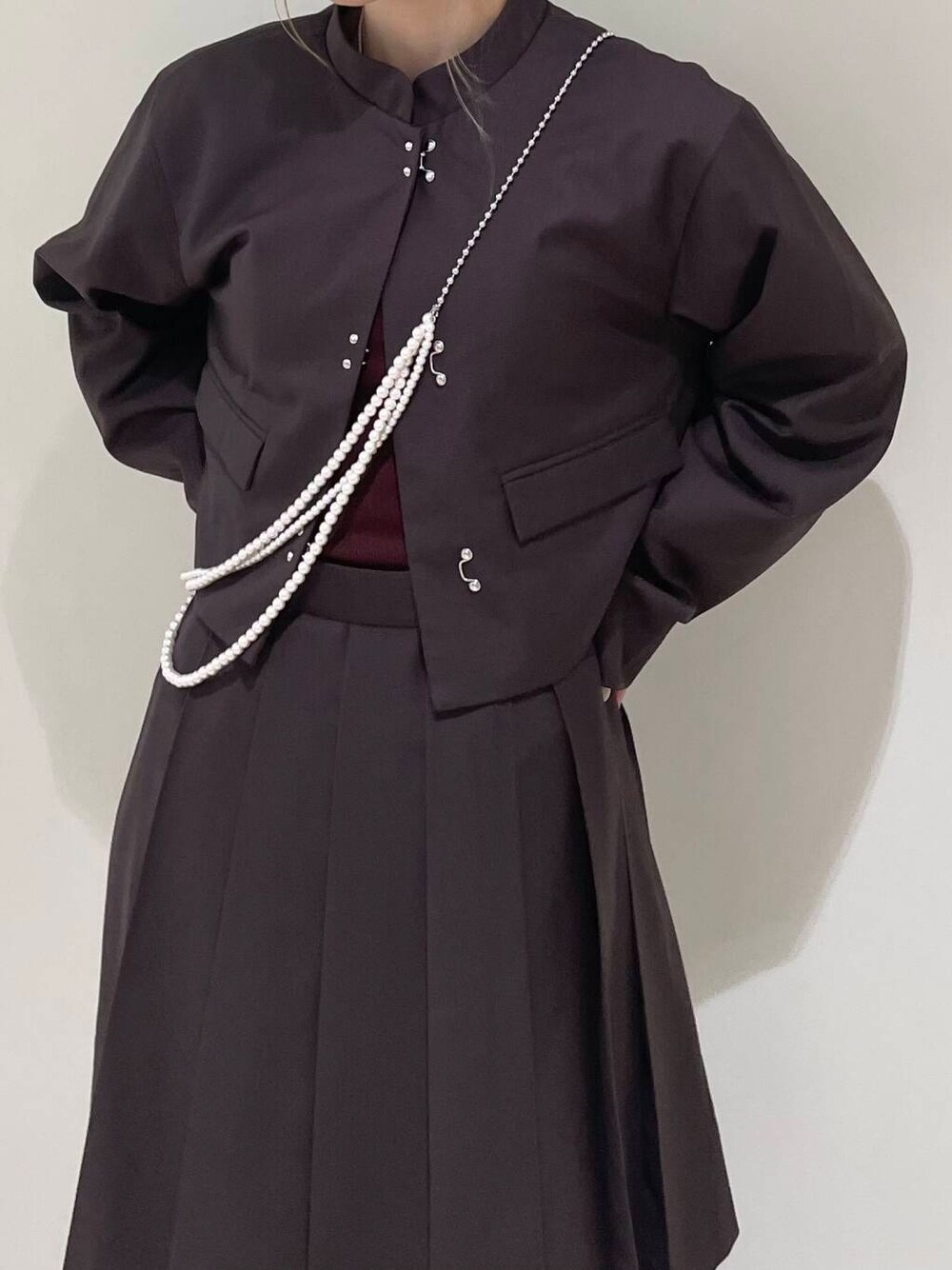 フロントホックや襟のデザインが他にはないデザインで、特にモードが好きな方にお勧めです♡個人的には柄のワンピースやチュールのスカートと合わせると可愛いですよ◎