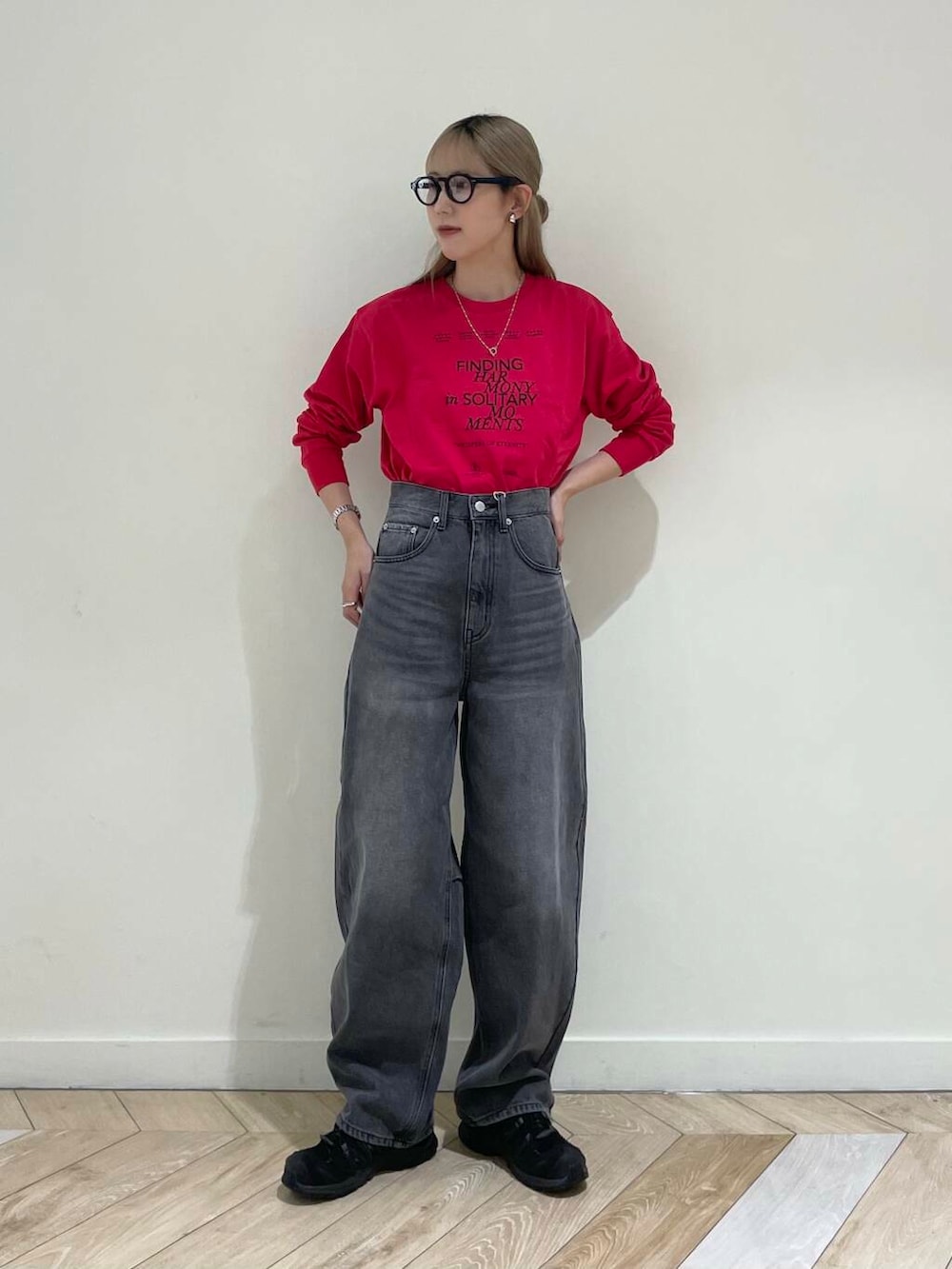 カーブシルエットのパンツは、ボリュームが出る秋冬服ともバランスが取りやすいです◎