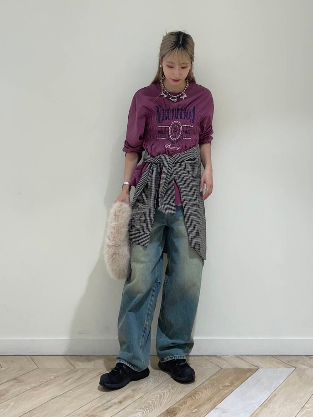 今回はパープルのロンTをメインに秋カラーのカジュアルコーデをしてみました♬