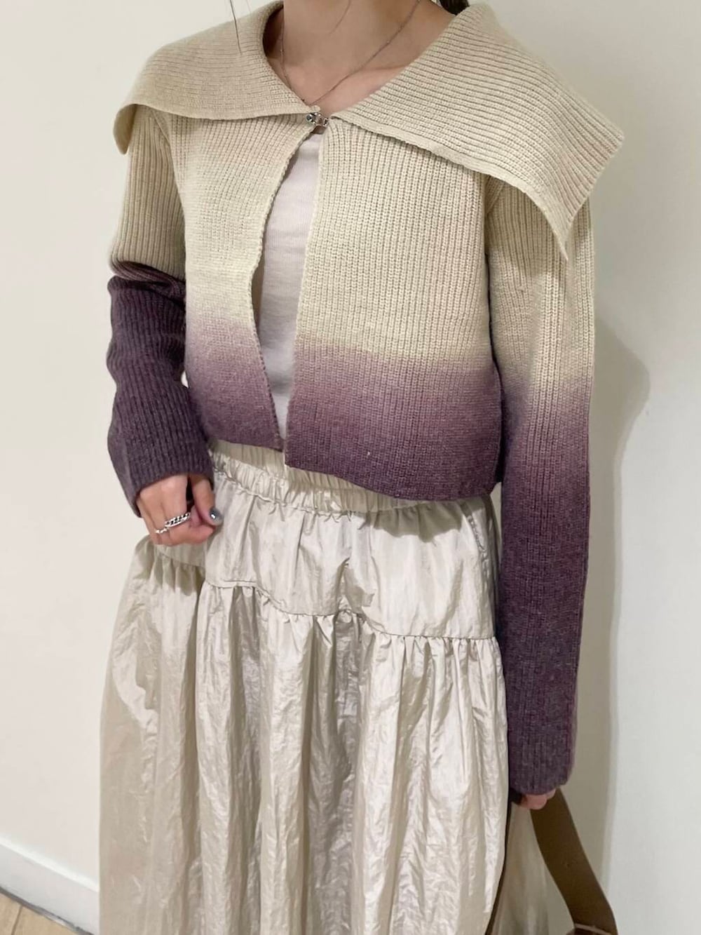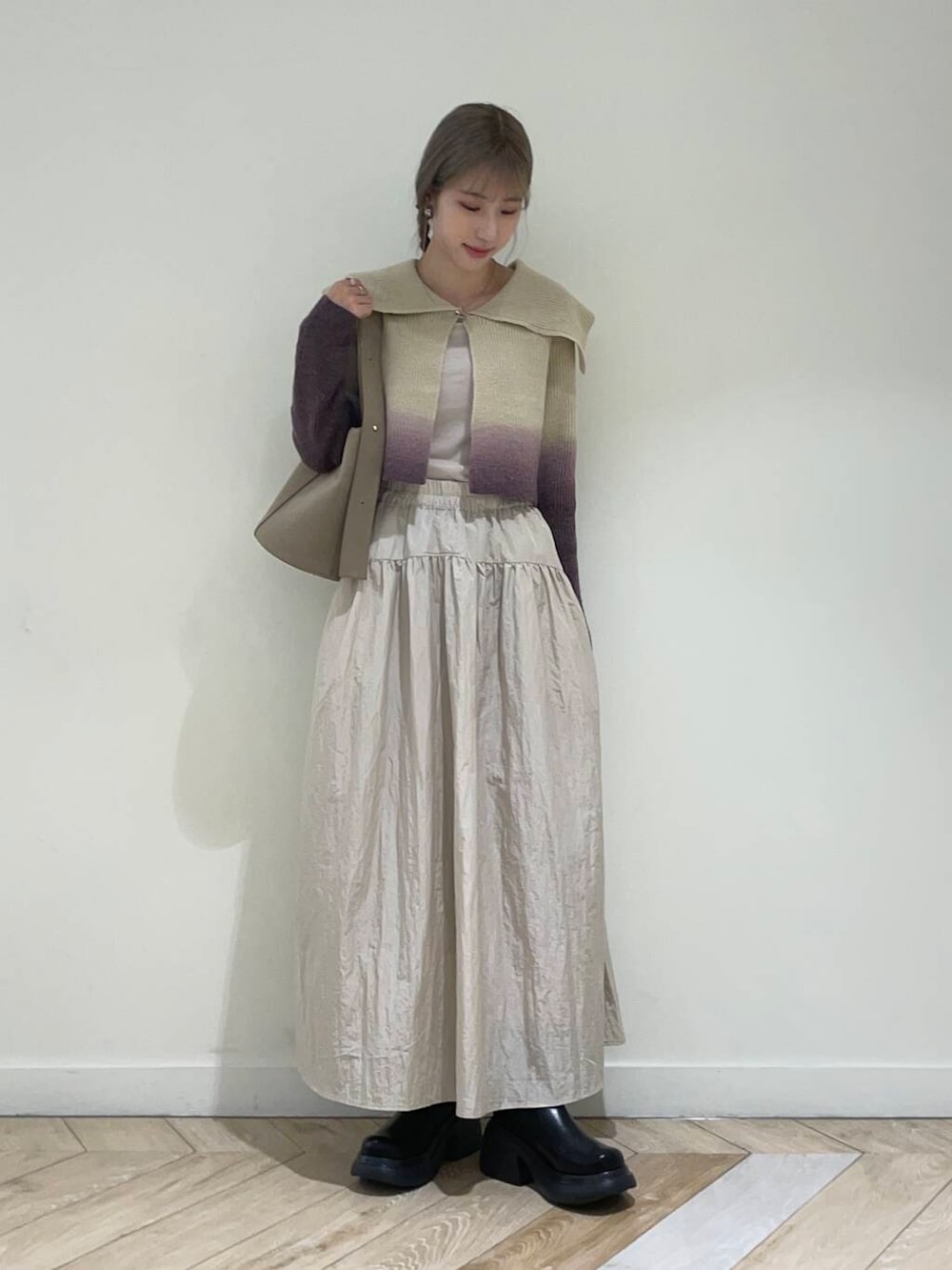 今回はグラデーションが綺麗なニットカーディガンをメインに、ベージュ系のワントーンコーデをしてみました♡