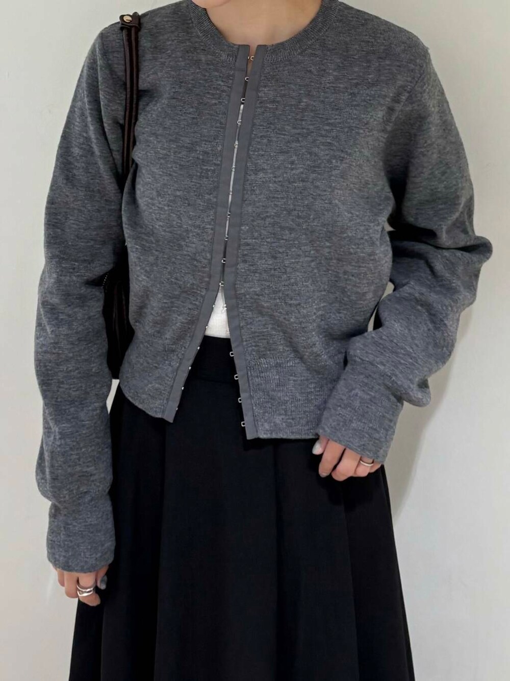 秋の必需品のカーディガンはフロントホックのデザインが珍しくポイントになります♡