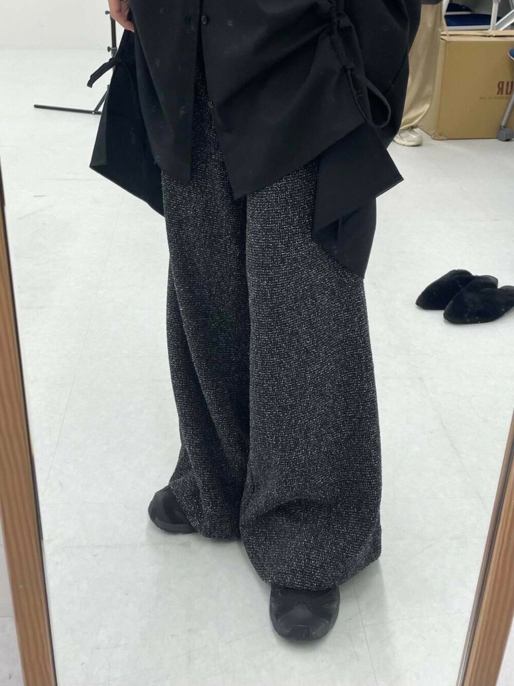 フレアシルエットのパンツは裾にボリュームが出てモードな雰囲気になります♪
