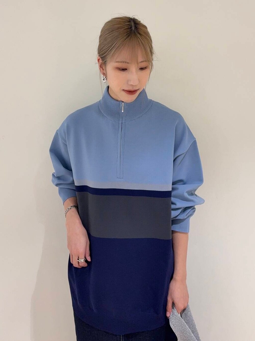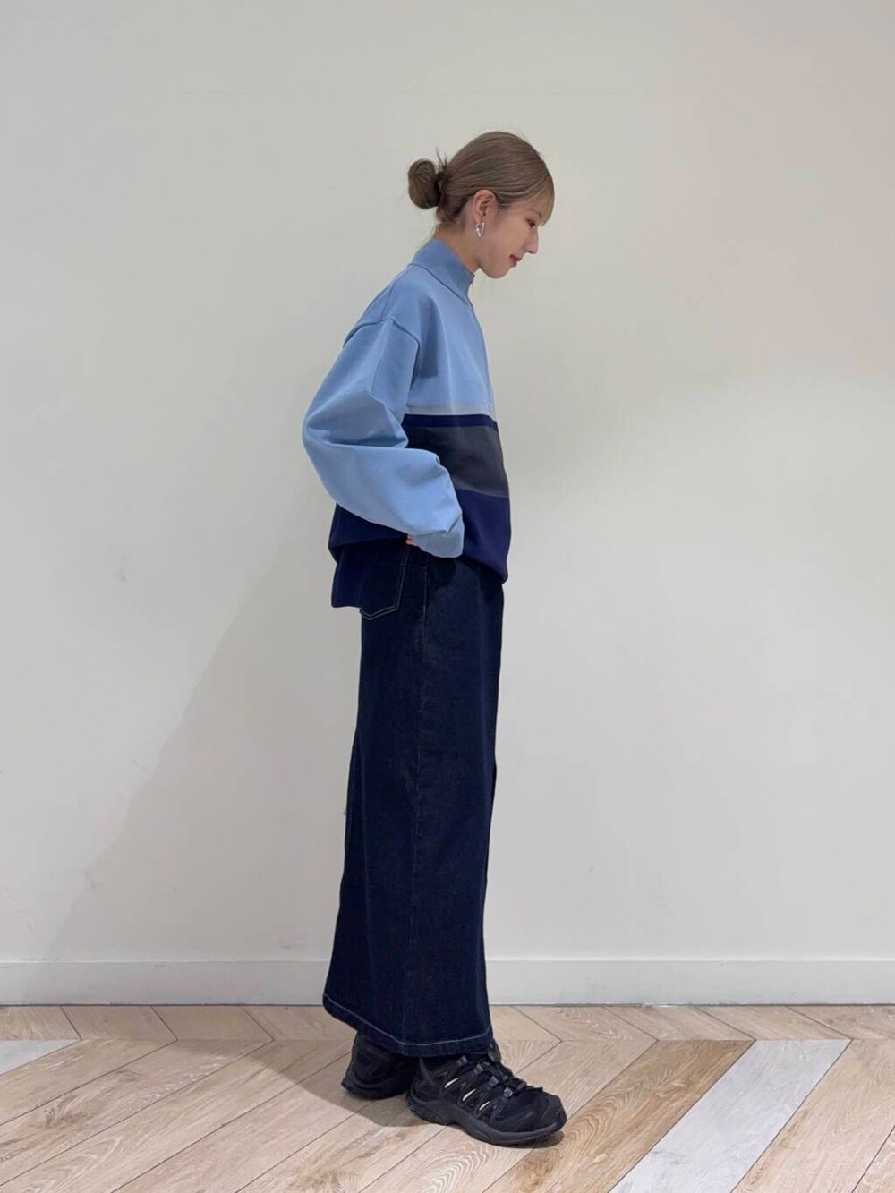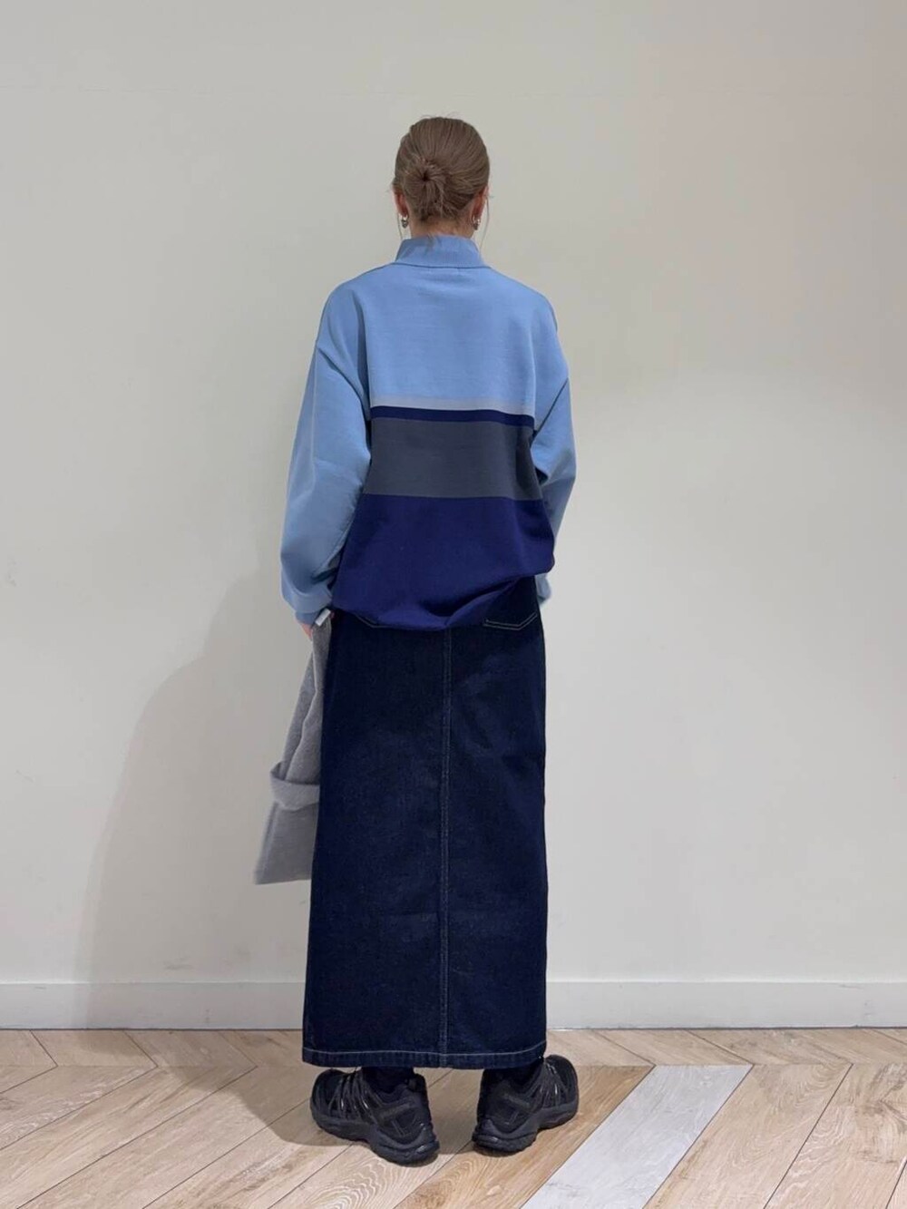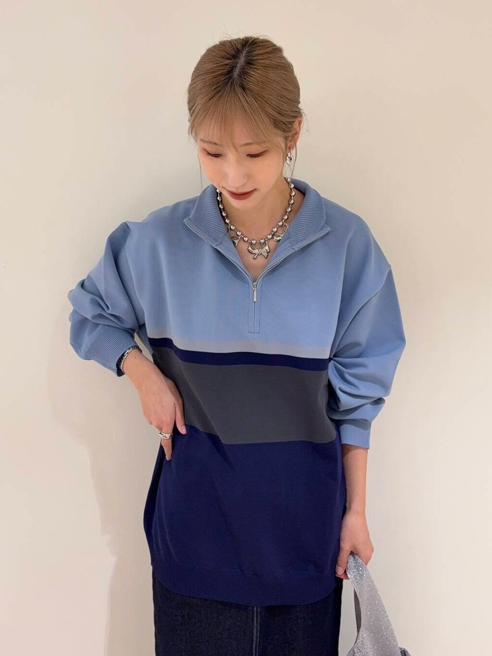 このブルーの配色はとにかく可愛くて映えるアイテムなので、ボトムは位置を合わせてデニムやグレーのスラックスを合わせるのもお勧めです♡