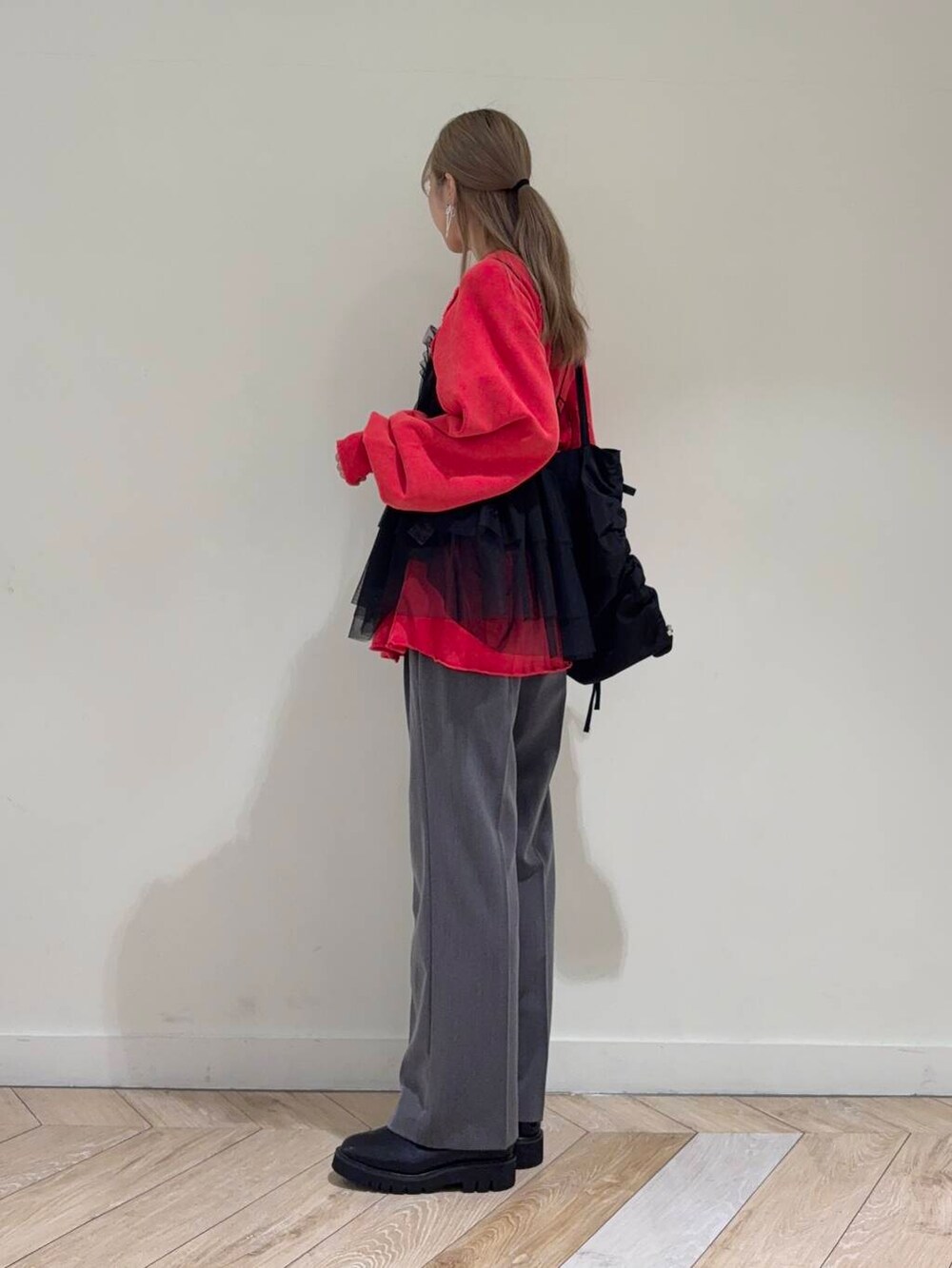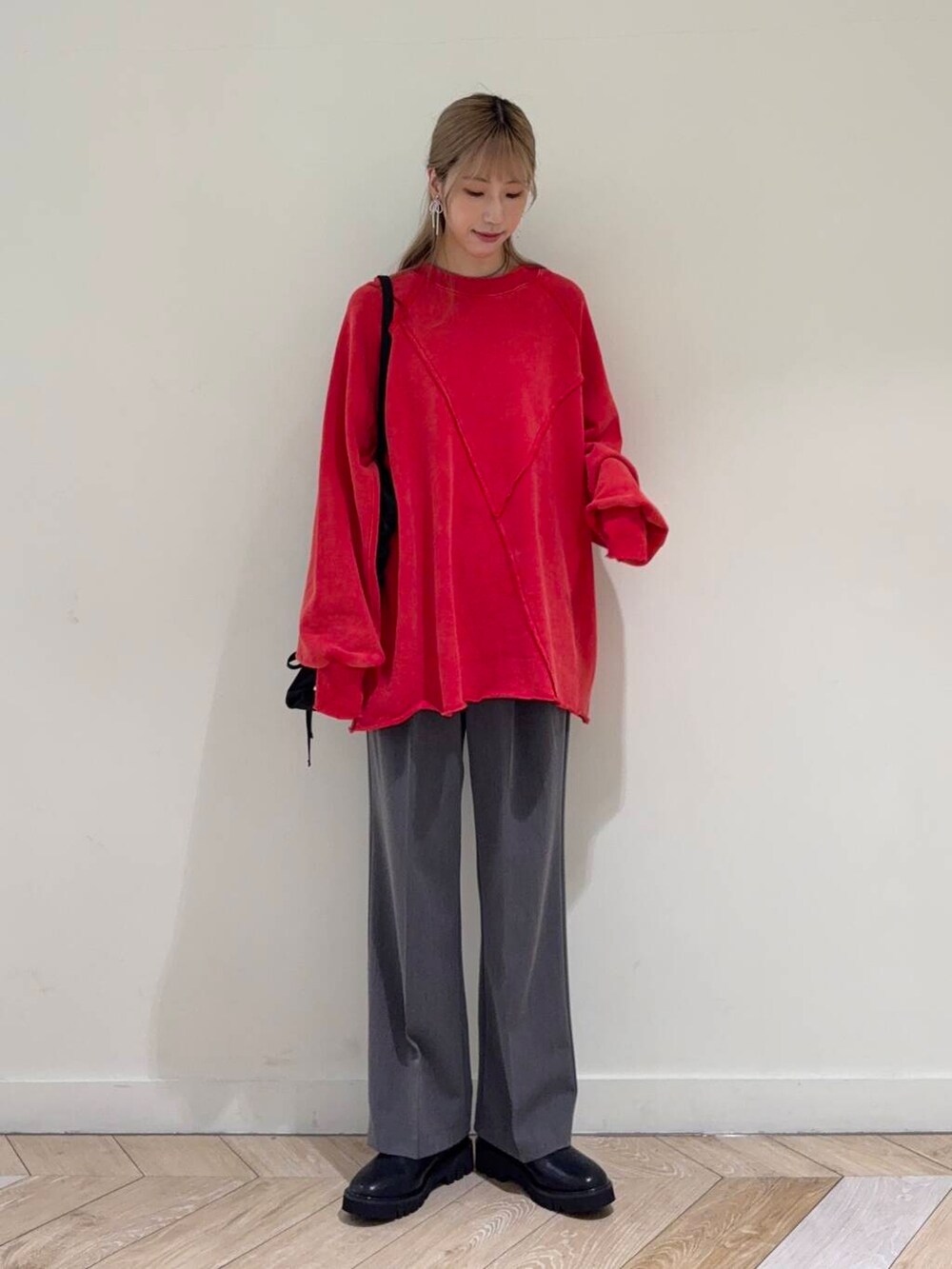 スウェットはルーズなシルエットがとっても着やすく、裾も切りっぱなしのデザインなので着膨れせずストンと落ちてくれます!
