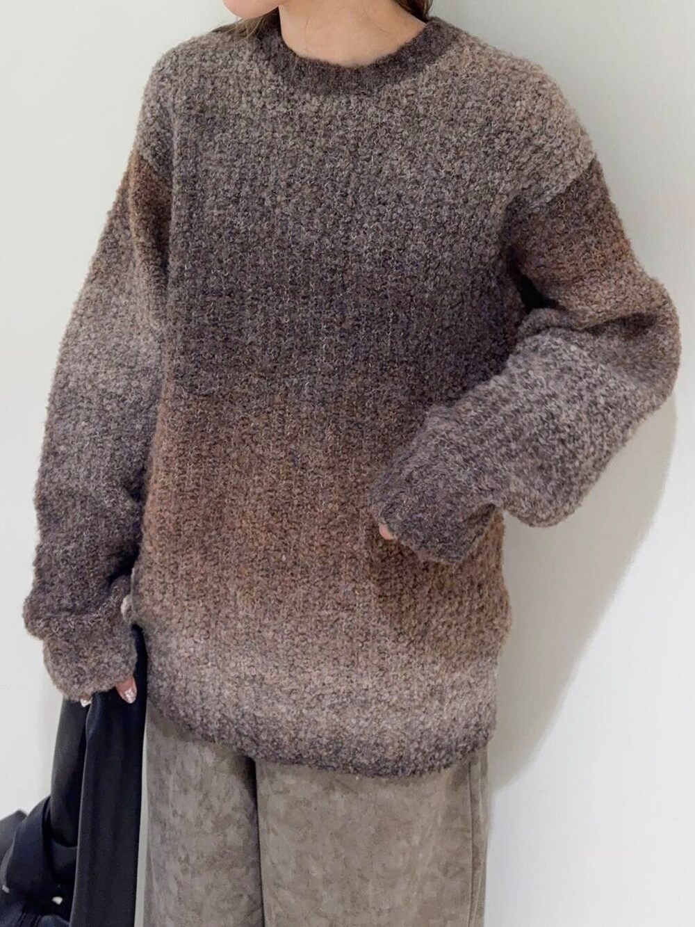 ブラウンのニットは柔らかい着心地と風合いで、着るだけで秋ムードになります♡