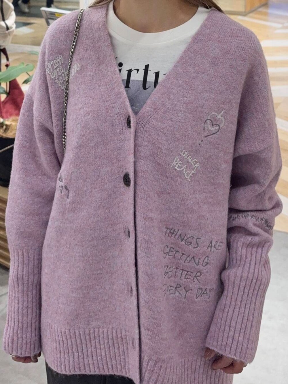 カーディガンの色に合わせてTシャツのロゴがピンクのものを選んでみました♪