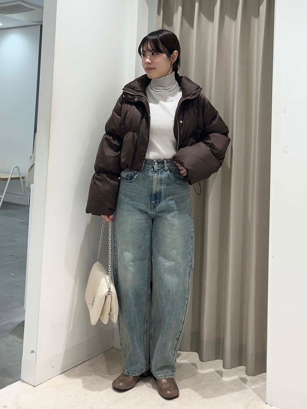 今回のコーデのメインでもあるダウンジャケット。フェザーが入っているので軽くて温かく、実用性も可愛さも兼ね備えた万能ダウンです!♡