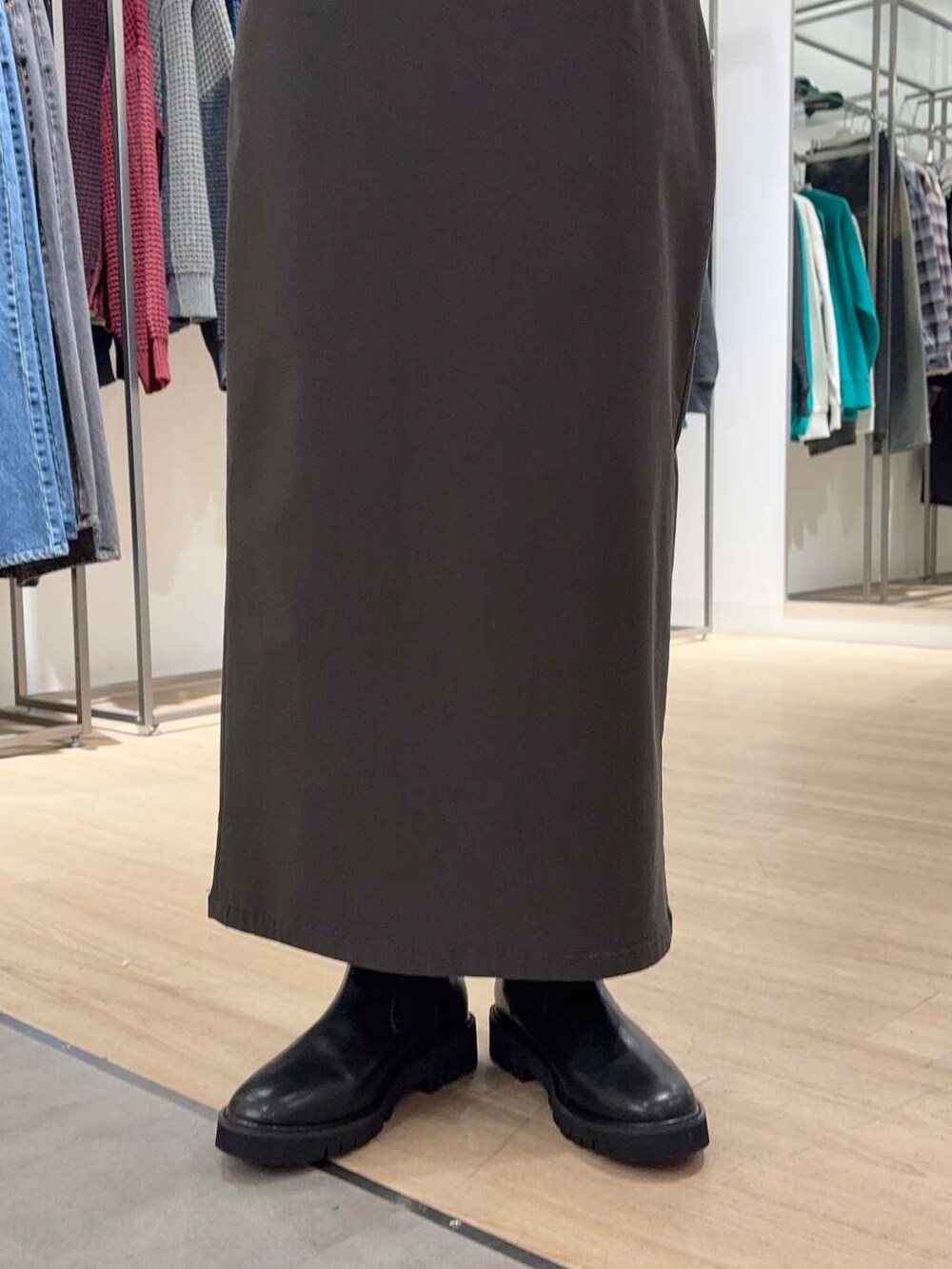 ストレッチ素材のスカートは着心地抜群で、コンパクトなニットでもボリュームのあるニットとも相性ばっちりです◎