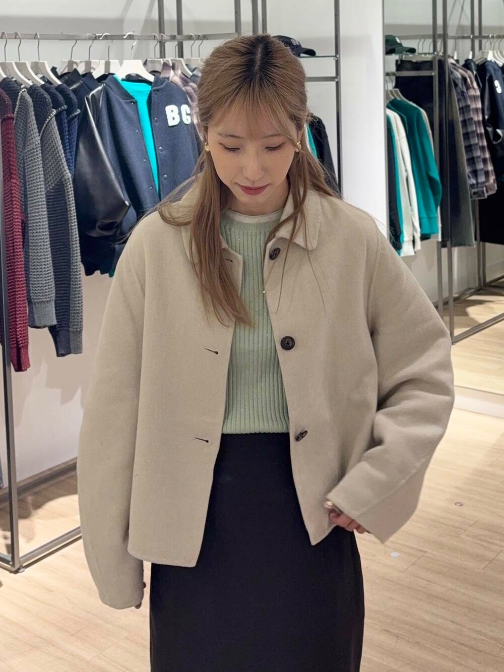 ショート丈のリバーコートはとっても軽くて、見た目よりも暖かいです!ダウンを着る前の時期の、少し寒さが目立ってきた今にとってもお勧めです◎