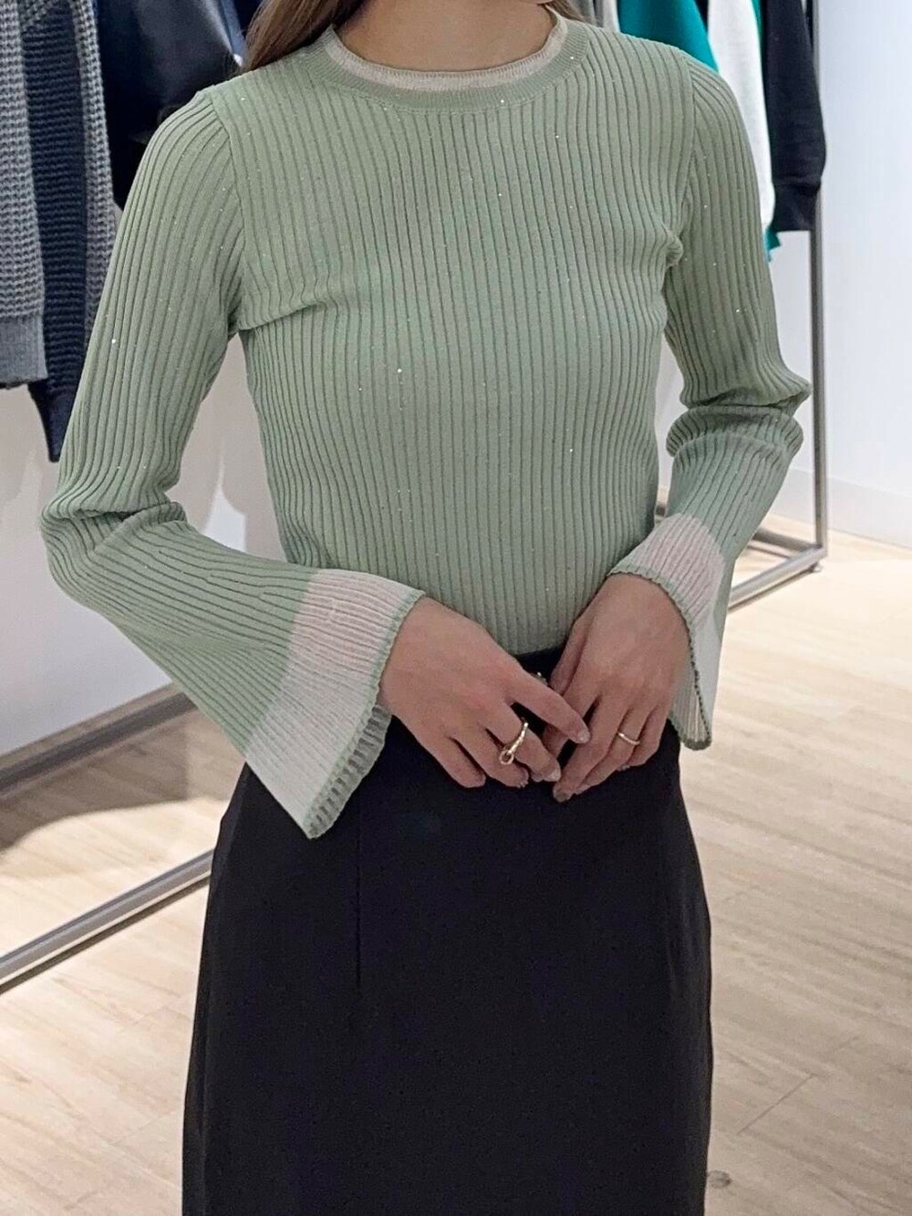 柔らかいグリーンのカラーが上品で、春先はトレンチコートを合わせても素敵にきまります♪お袖のデザインも可愛いので、キャミワンピースやジャンパースカートともぜひ合わせてみて欲しいです!