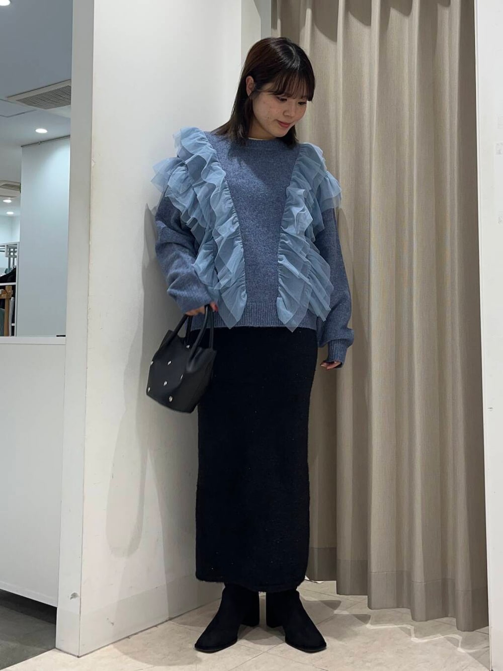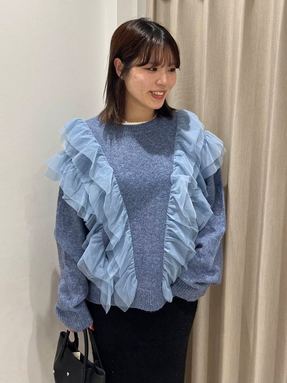 フリルがたっぷりあしらわれているニット♡全くちくちくせずゆったりもっちりとした着心地が癖になる推しアイテムです◎