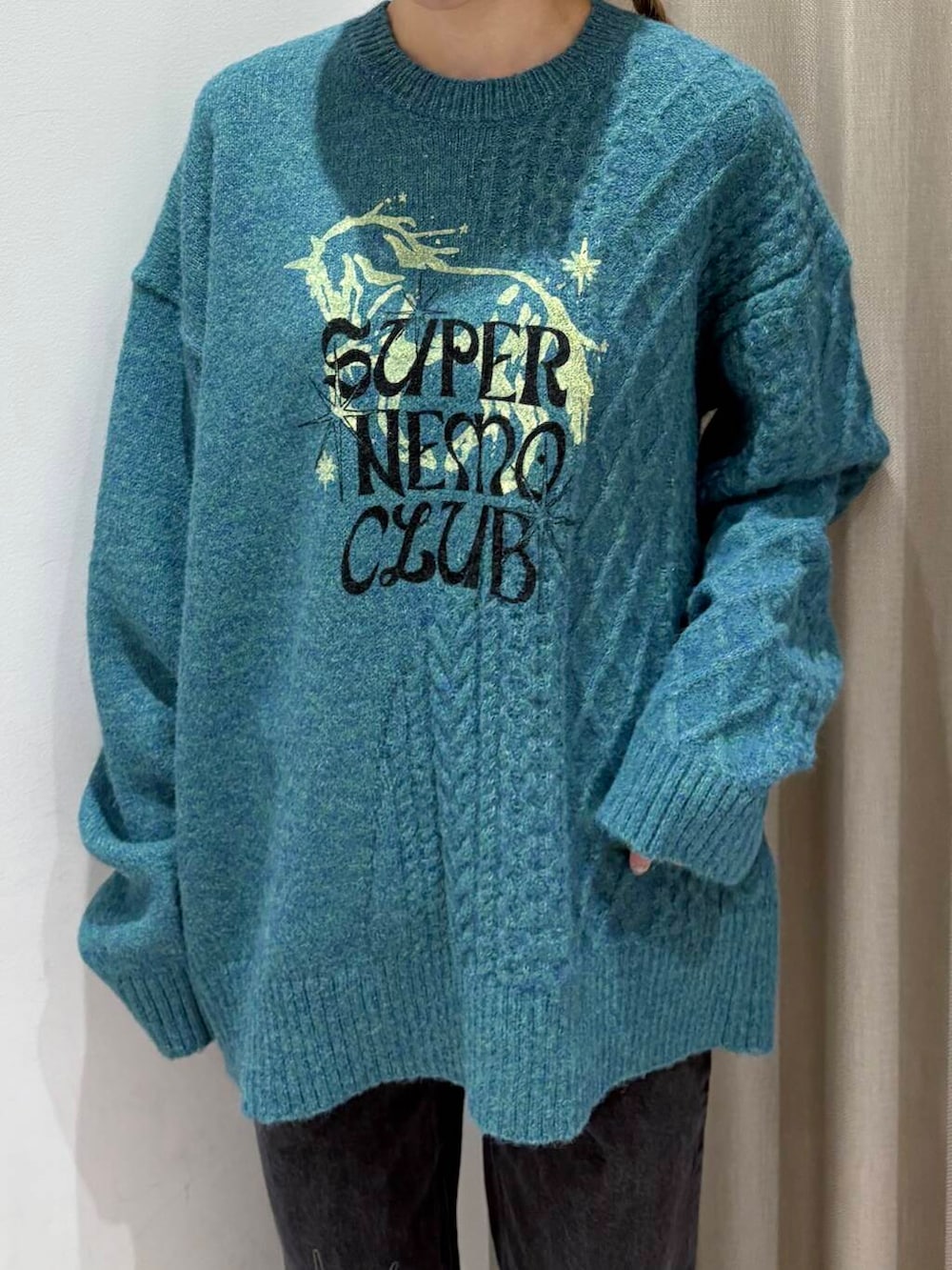 フロントのデザインやカラーリングがコーデの主役になるアイテムで、お出かけにもお勧めです◎少しチクチク感があるので、肌が弱い方はインナーとの着用がベストです!