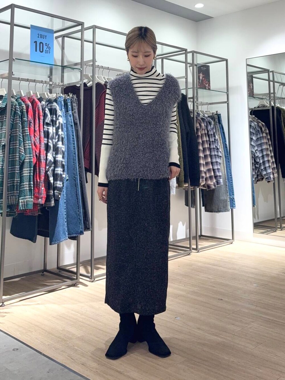 青い【フォローする】ボタンを押して頂くと トップメニューの【♡お気に入り】から すぐにコーデがチェックできますので、
