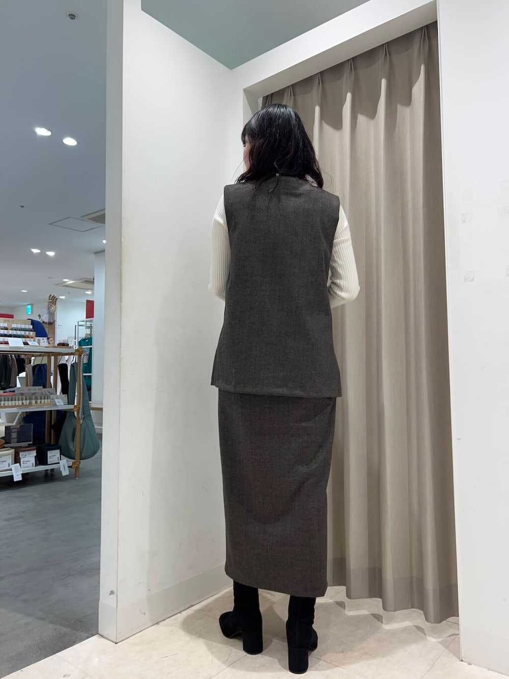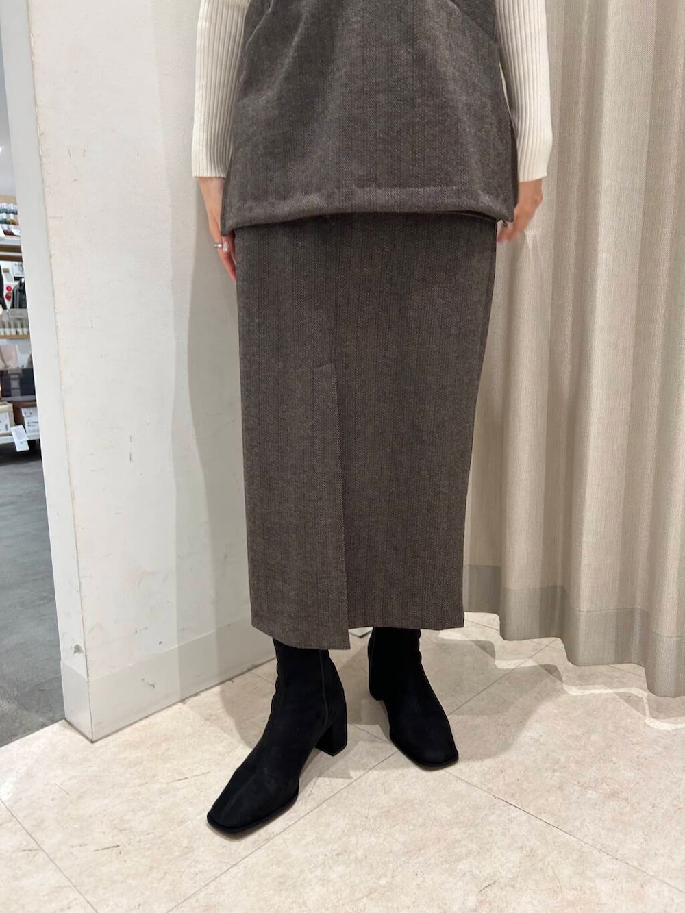 タイトスカートは前側に深めのスリットがはいっているので足さばきが楽ちんです。