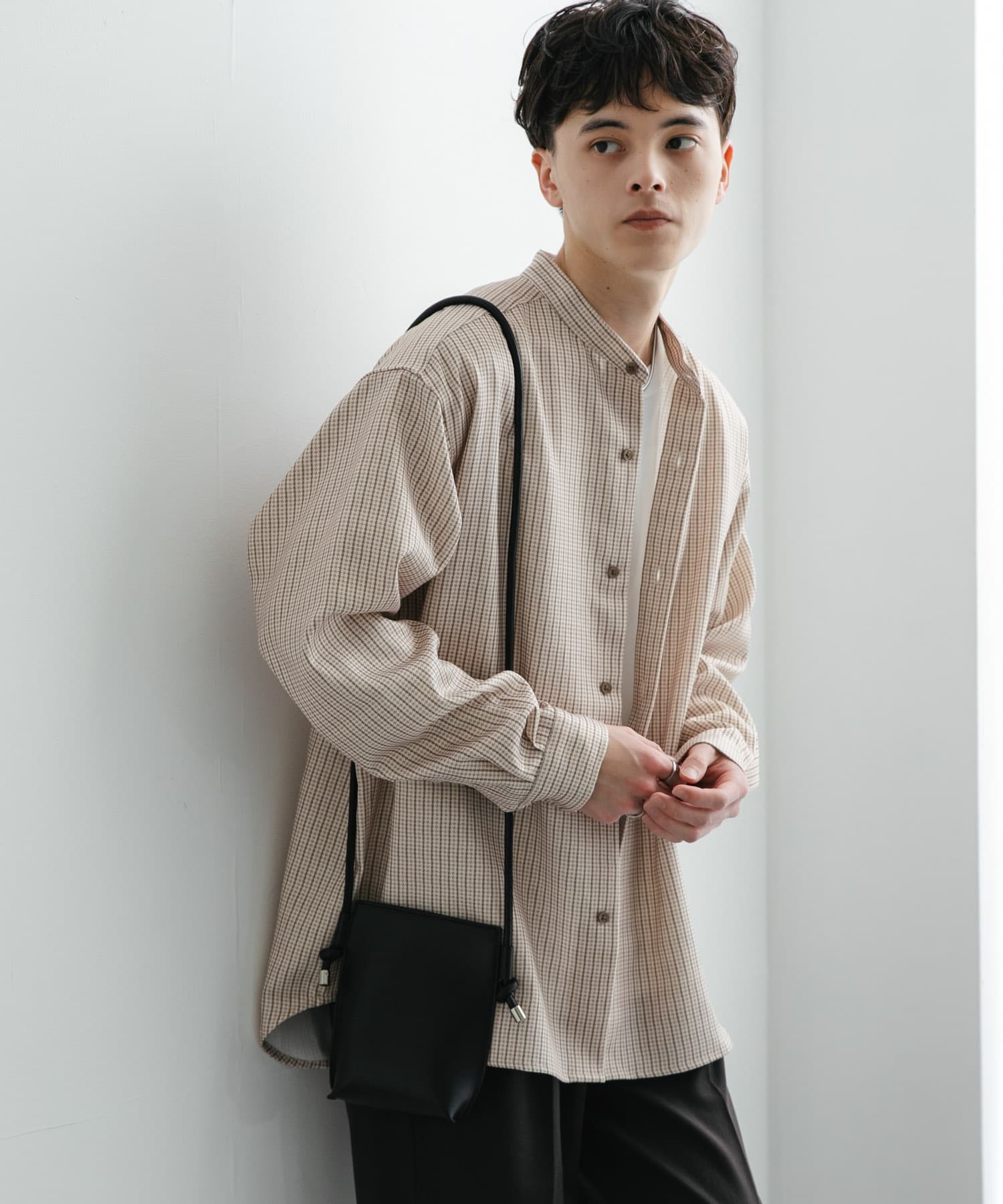 SENSE OF PLACEウールライクバンドカラールーズシャツ