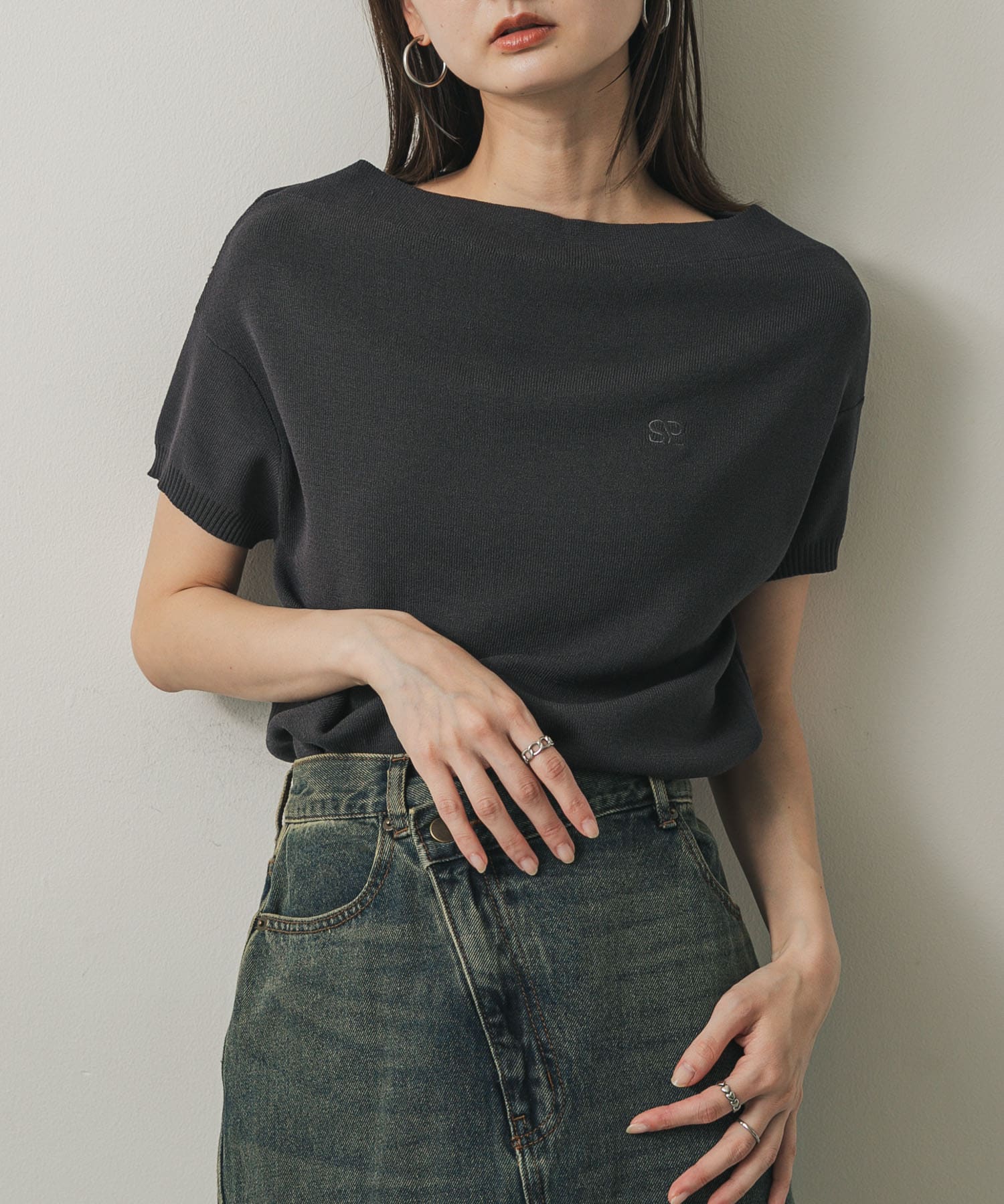 SENSE OF PLACEシシュウボートネックセーター(半袖)
