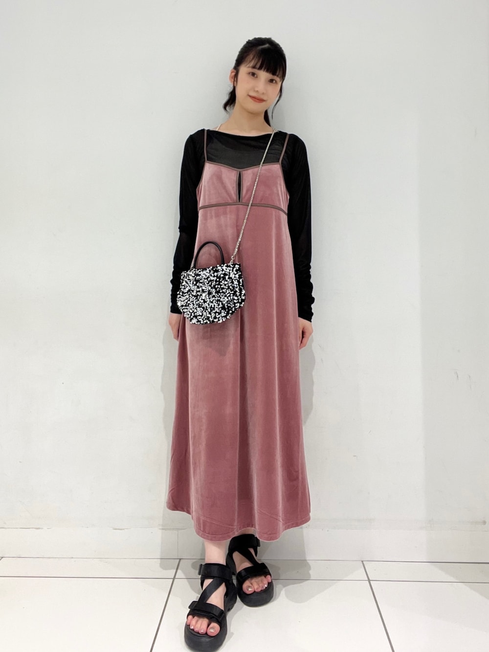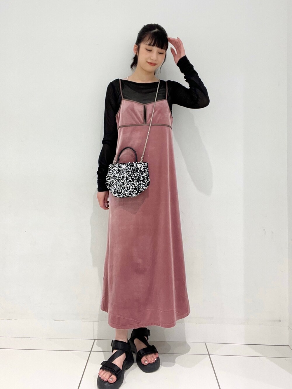 ワンピースはベロア素材なので上品な着方はもちろん!