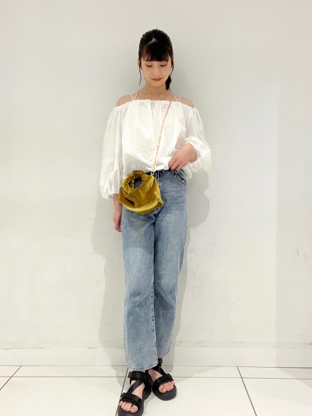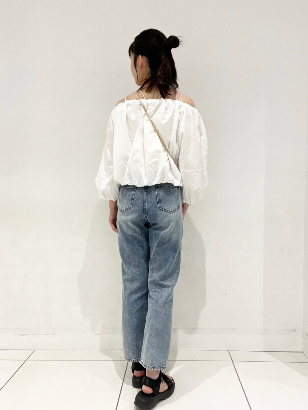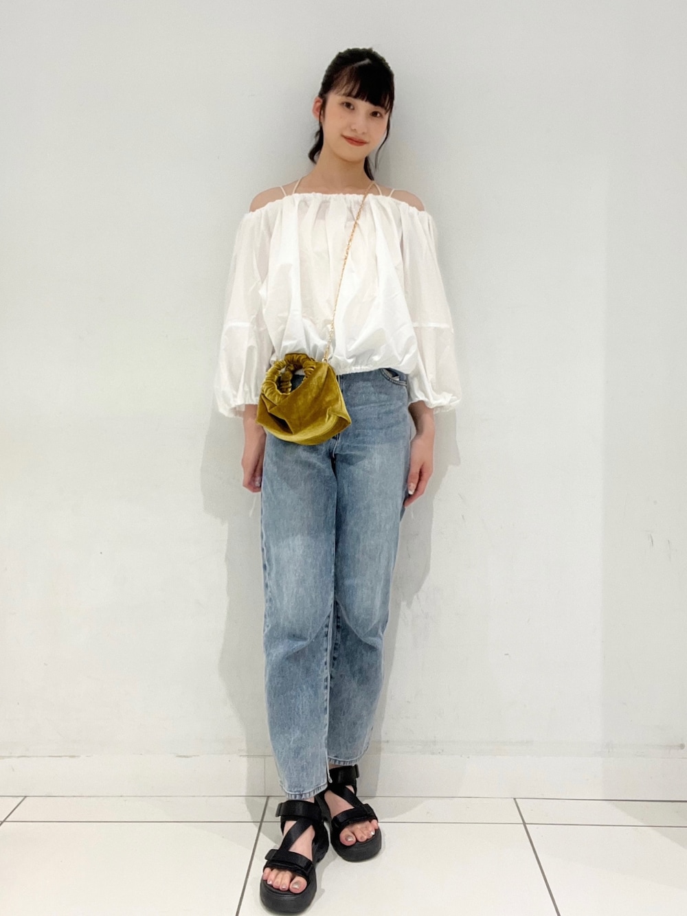 トップスはバルーンの袖が特徴のオフショルブラウスです✨️