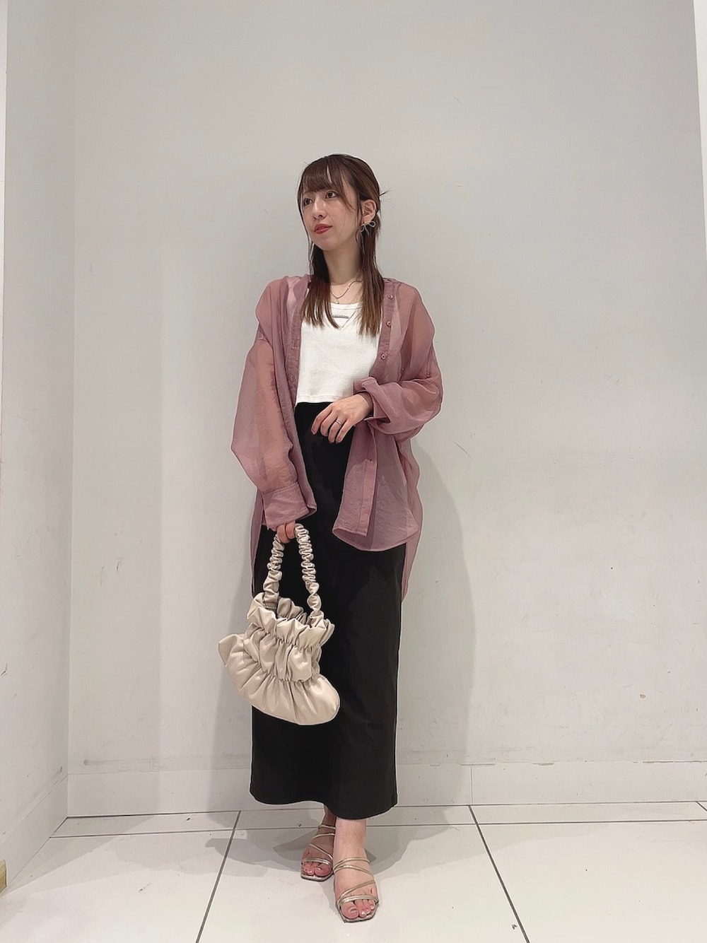 クロップドのキャミ、タンクに合わせてワイドパンツに合わせて羽織れば今年らしいスタイリング。パンツでも、スッキリしたシルエットのスカートと相性がよく、ビスチェ合わせをしても◎