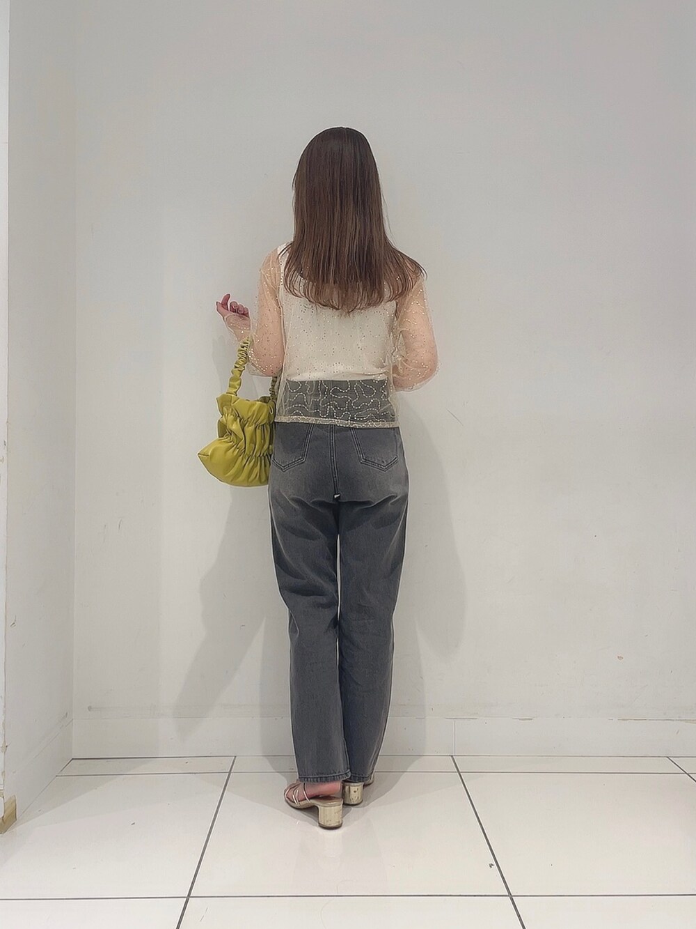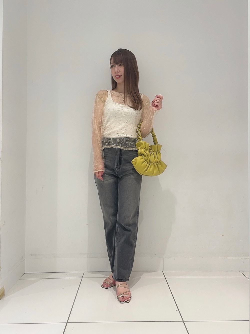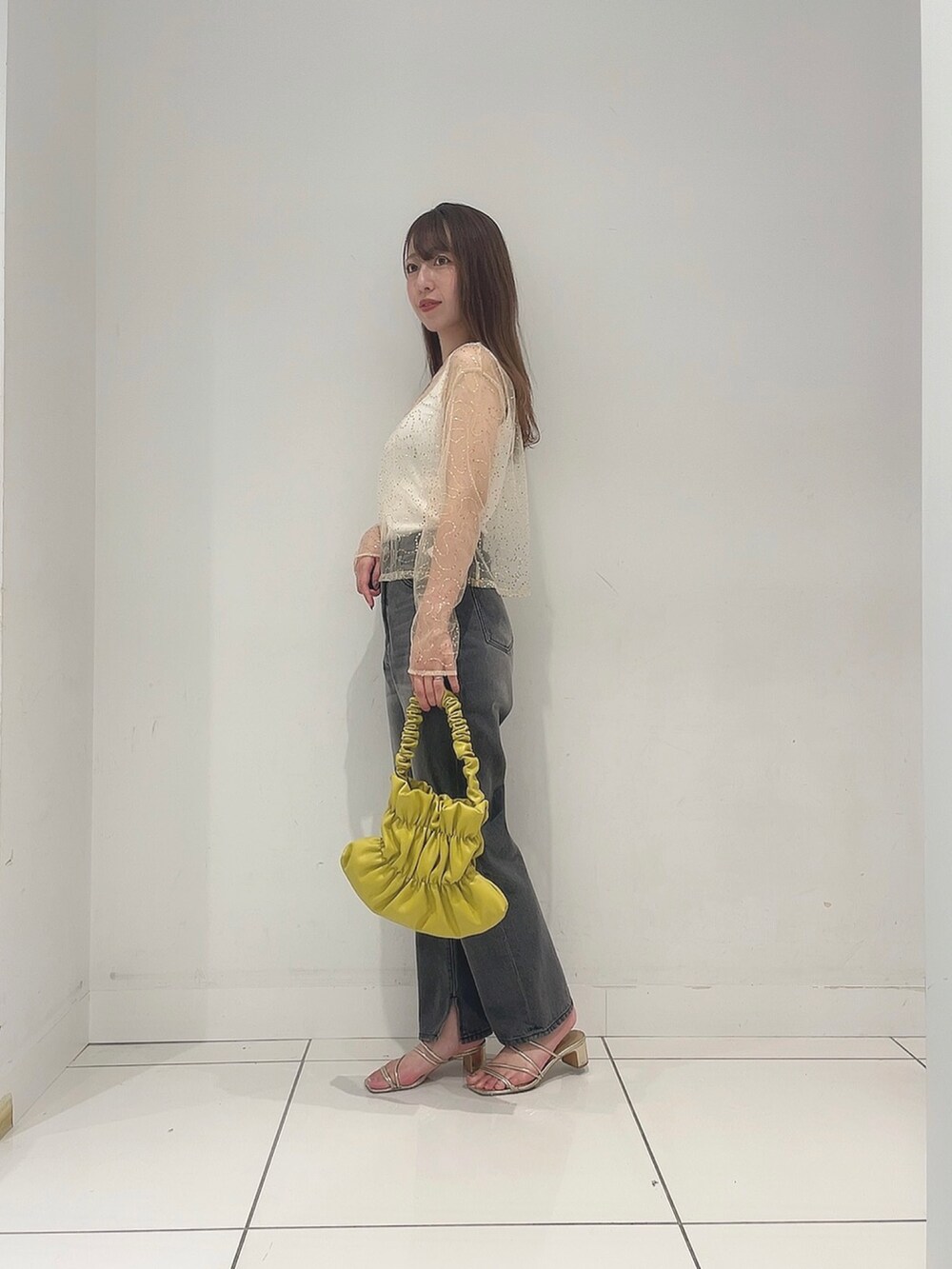 ジレの中やジャケット、ジャンパーワンピースなど様々なアイテムとレイヤードするのにバランスがいいトップスです。冬はニットやスウェットの中に着て裾や袖口からスパンコールをのぞかせるとまた違った印象になりオススメです。
