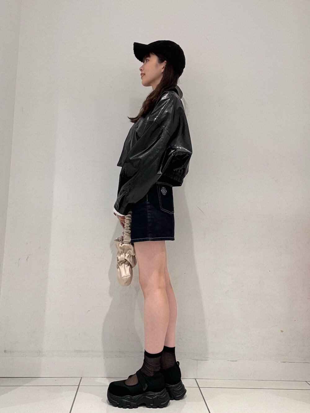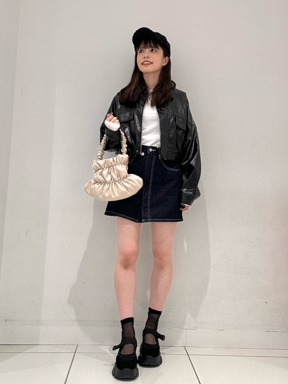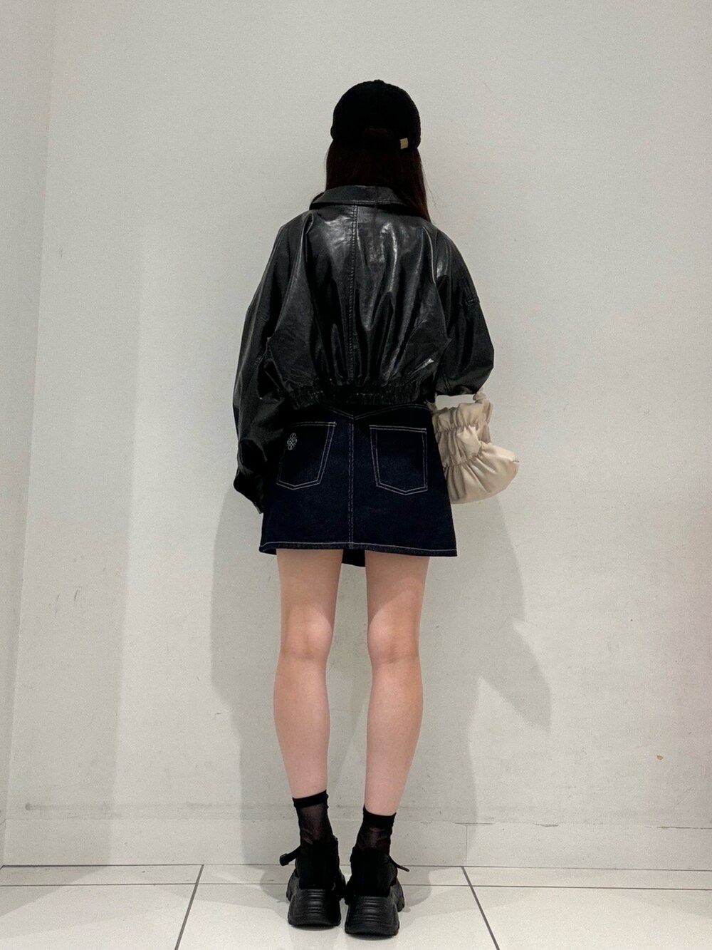 レザージャケットと合わせることで、甘くなりすぎず着用いただけます◉