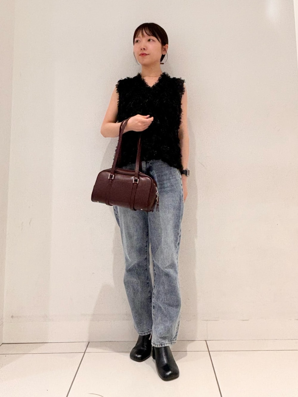 ベストになっており今の時期はタンクトップや半袖と合わせて、これからの季節はシアートップスやハイネックニットとのコーデもかわいいですよ✨