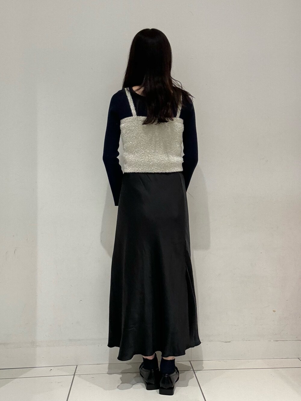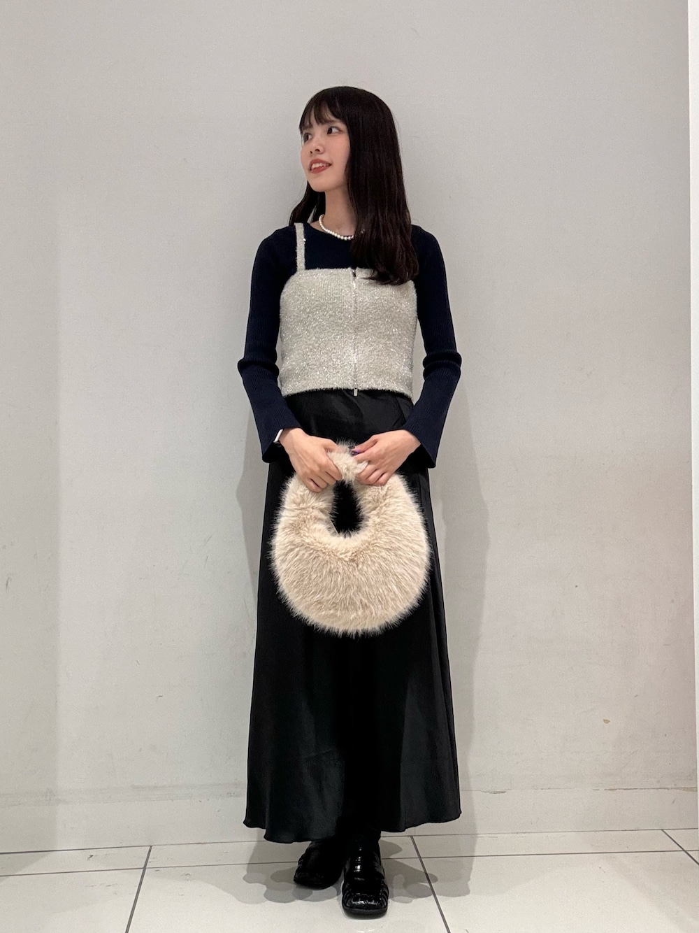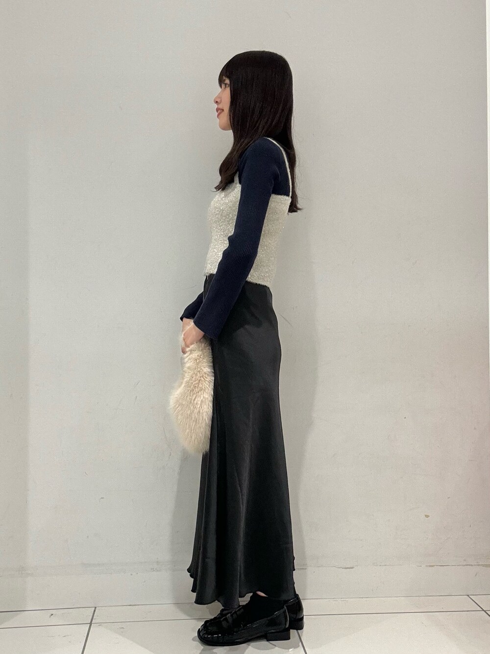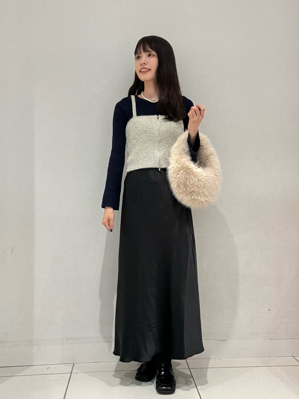 普段暗めなコーデが多いのですが、ニットビスチェを着るだけで、一気にコーデを明るく華やかにみせてくれます◉