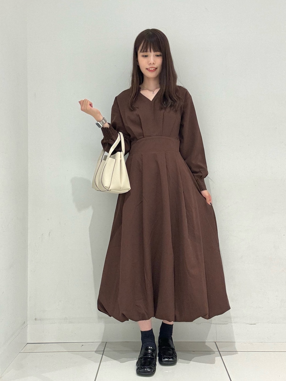 裾に向かってふわっと広がるデザインのワンピースです🤎