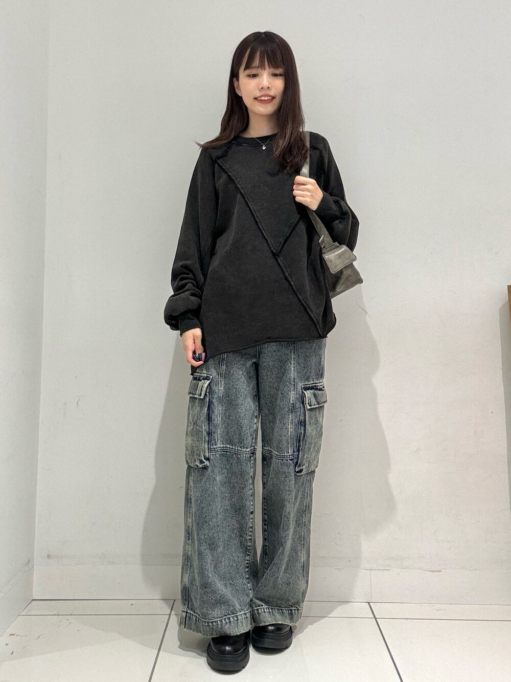 店頭で大人気なルーズスウェットを使ったカジュアルコーデです🖤