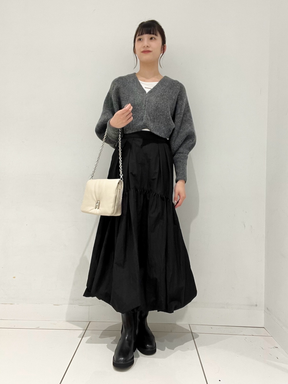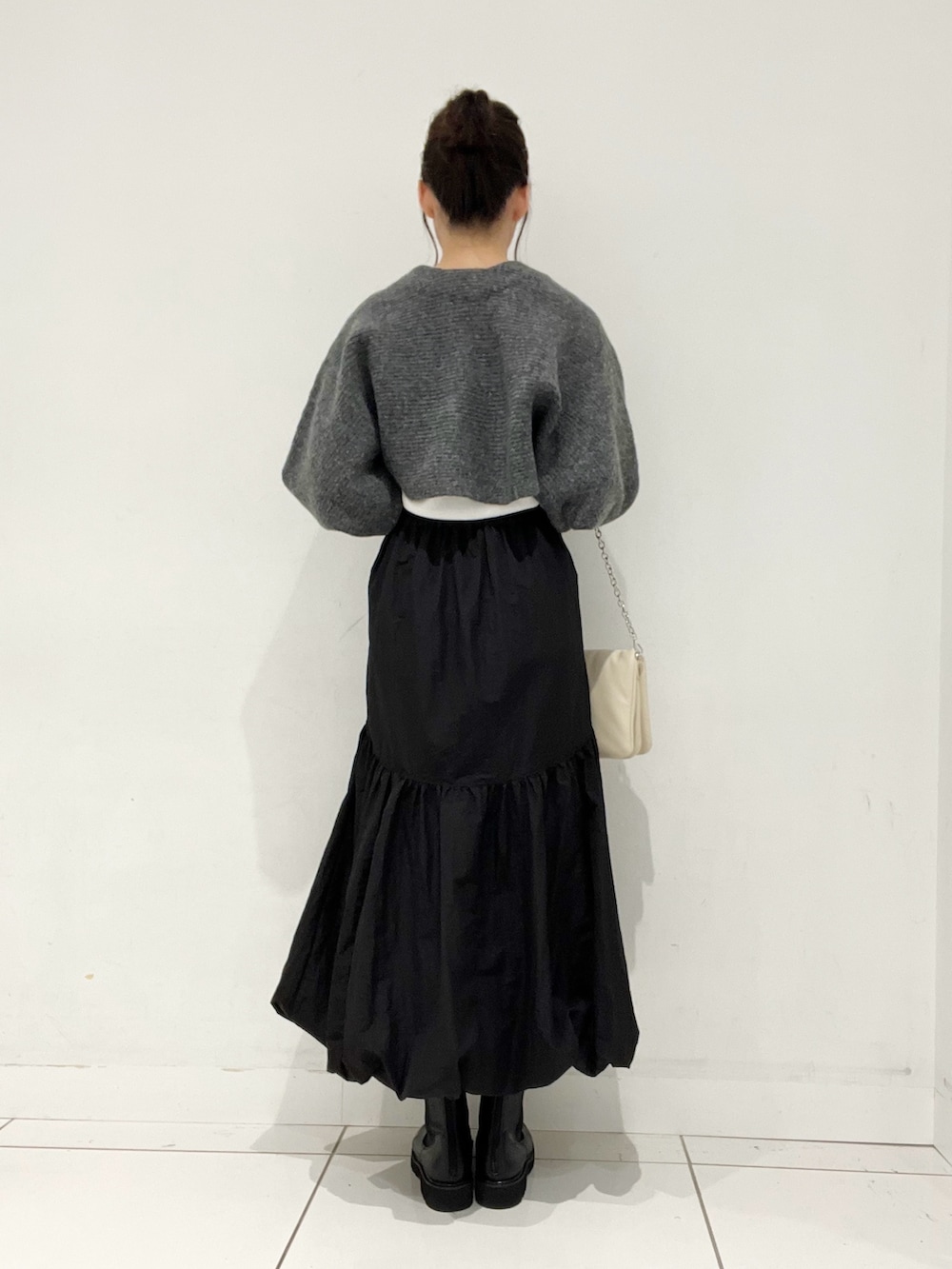 ショート丈のカーディガンと合わせると