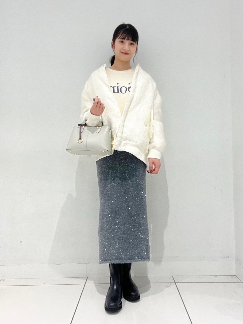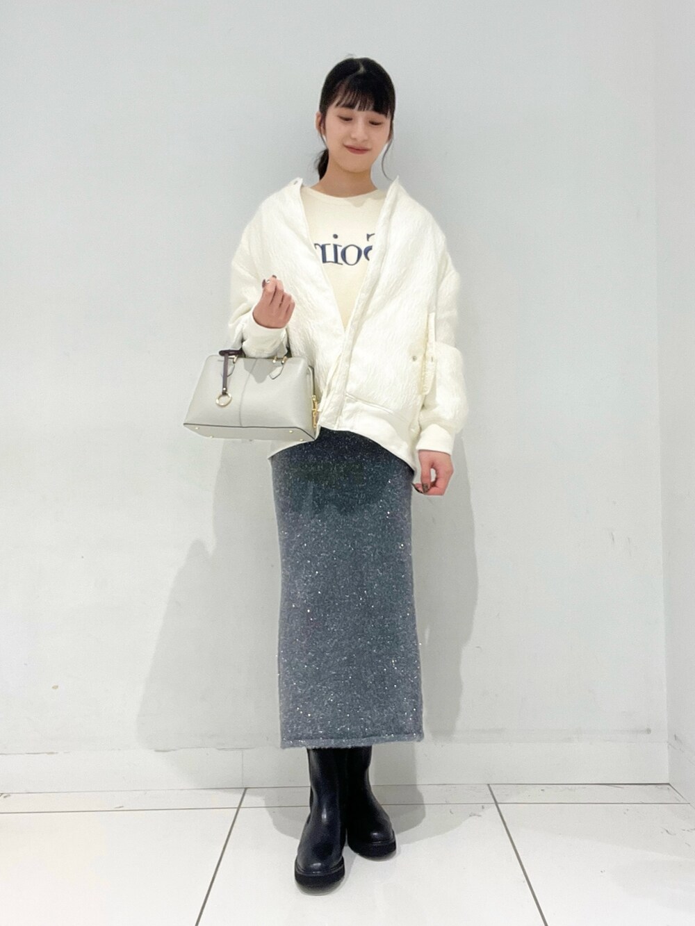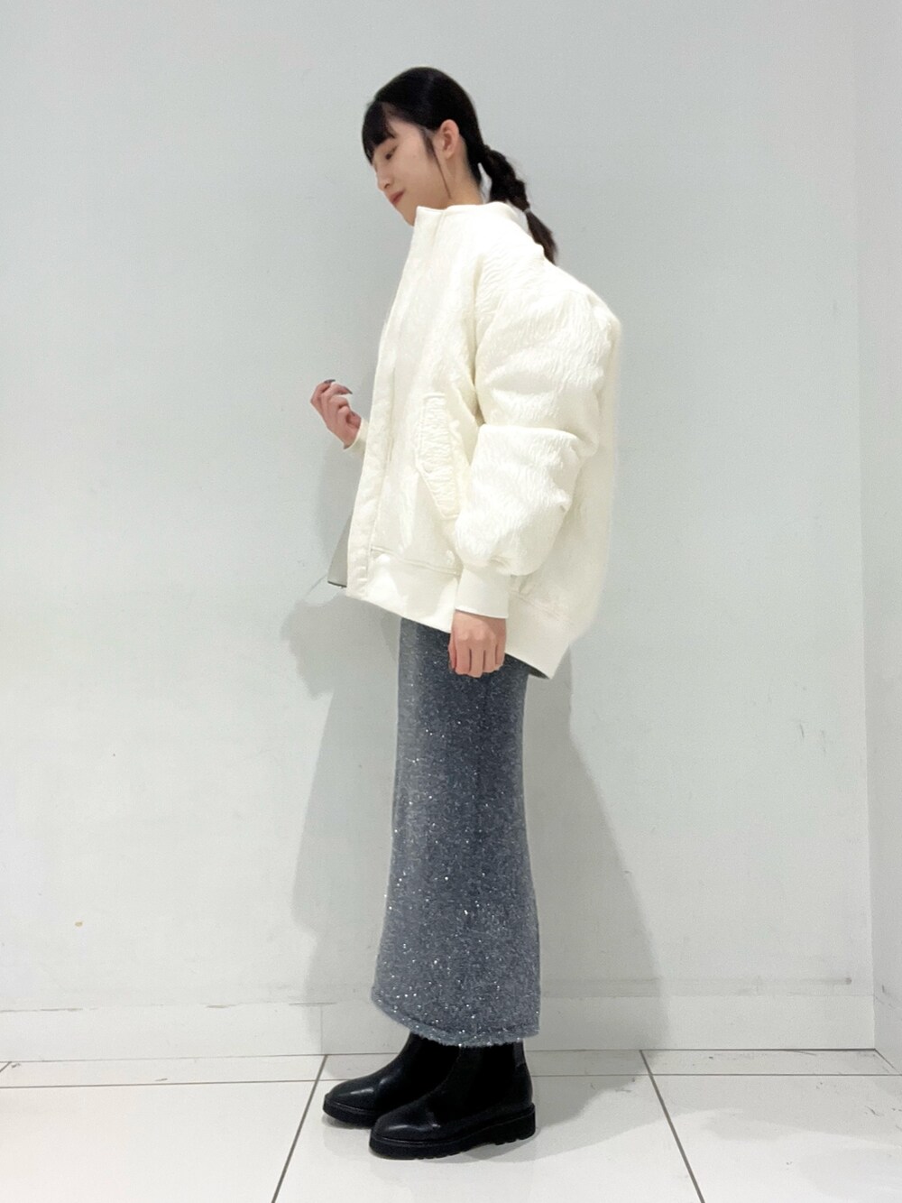 スカートもトップス同様、肌触りがよくストレッチが効いたラメニットスカートになっています!