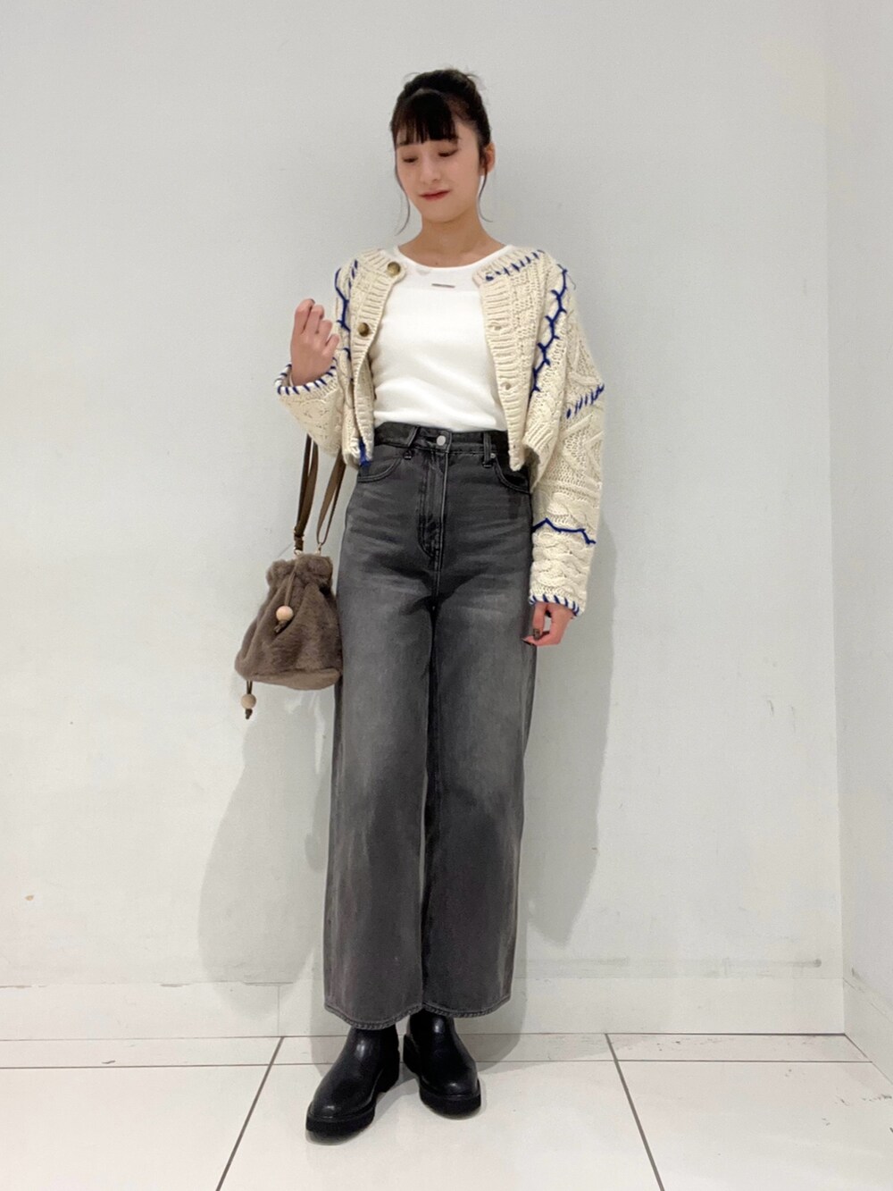 朝晩が冷え込む季節なので、首元スッキリのトップスに厚手のカーディガンを合わせてみました!✨️