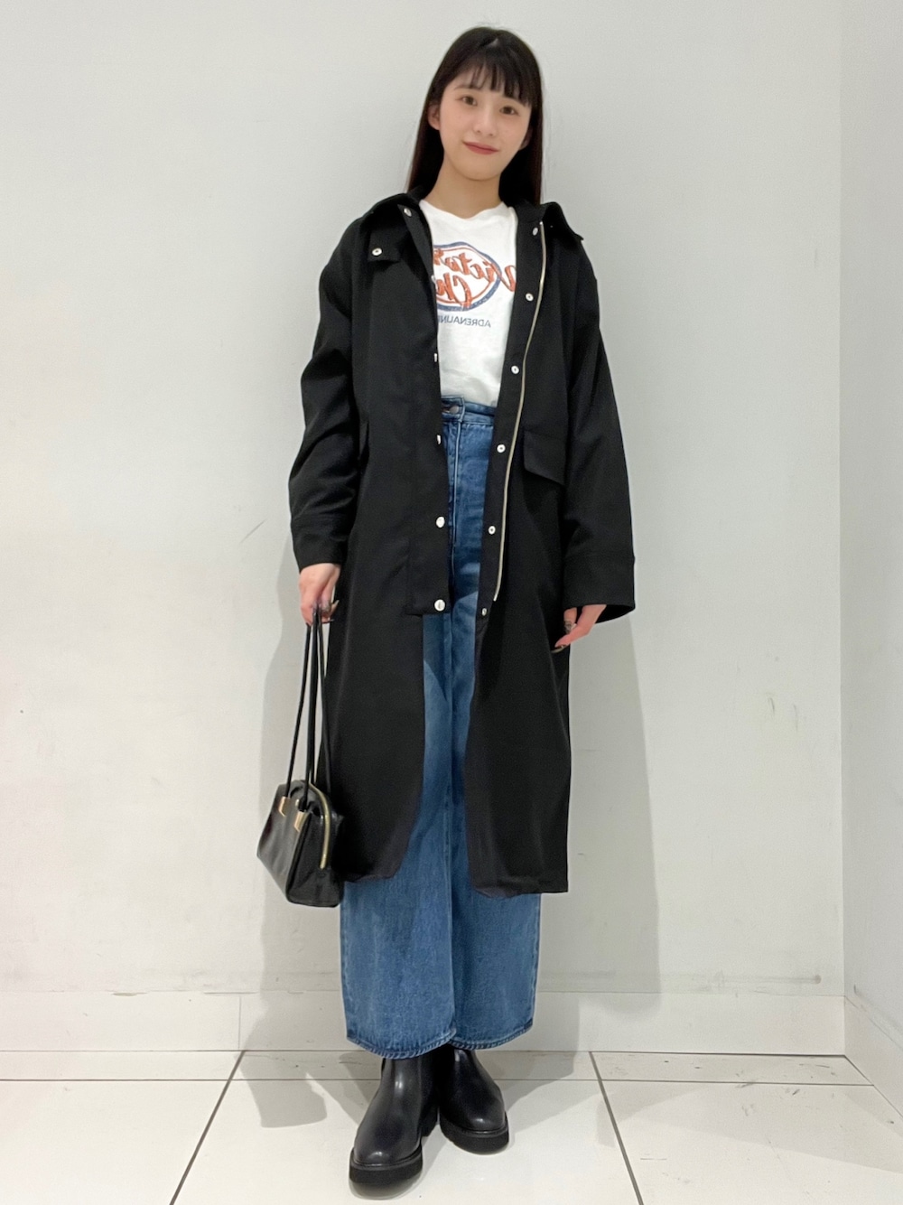 ハイウエストのワイドデニムでスッキリするのでロングコートとの相性◎!!