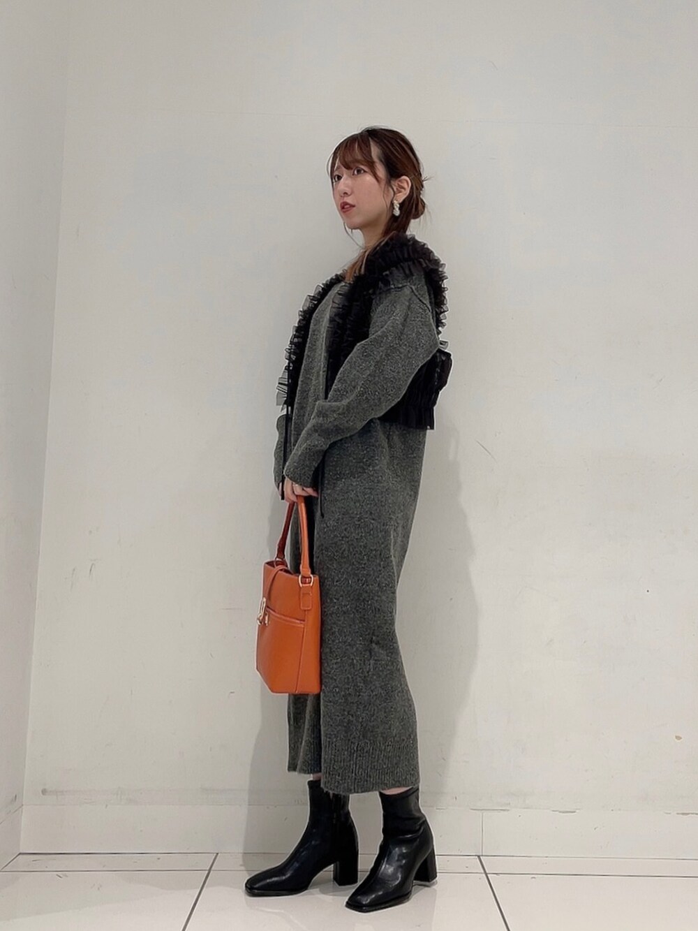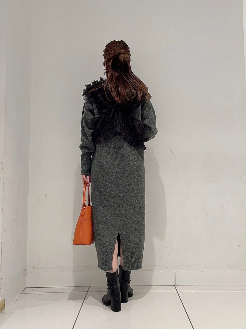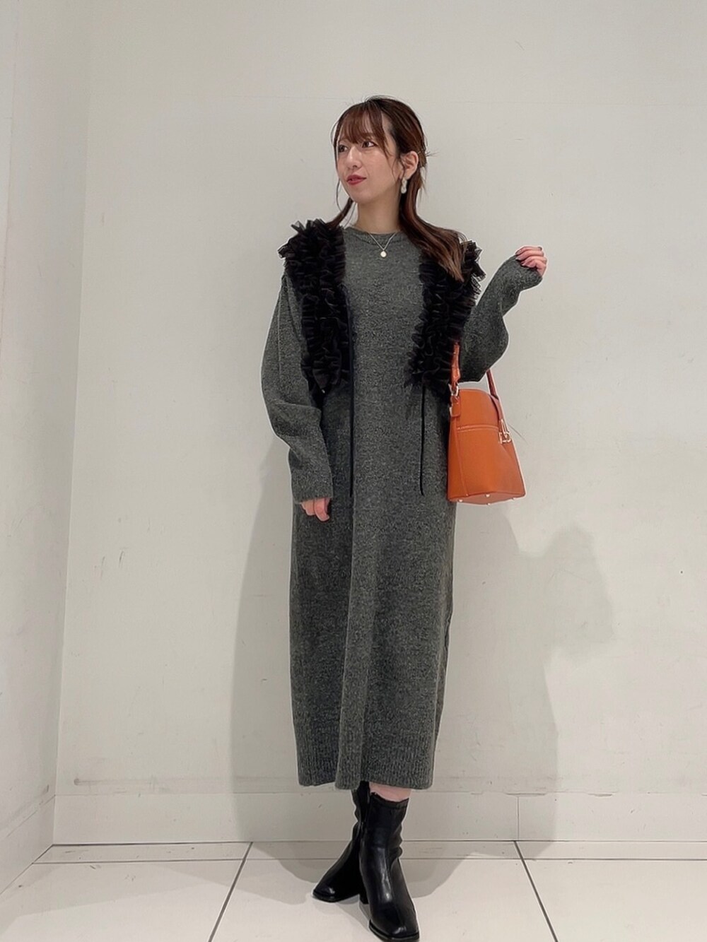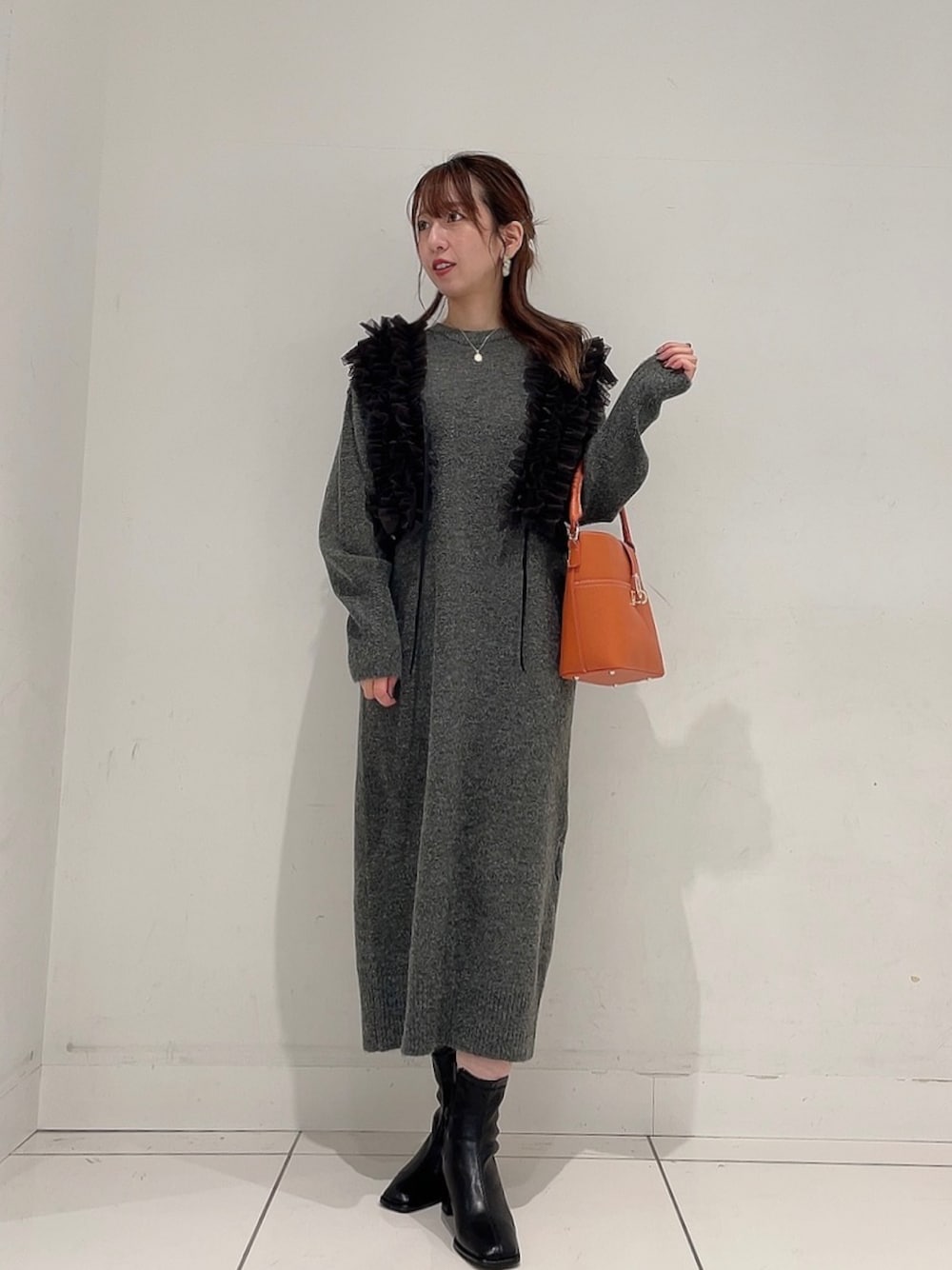 やわらかいニット素材のハイネックワンピース、寒い季節でも首回りが暖かくリラックスな着心地でありながら、取り外し可能のチュールベストがワンピースを彩ってくれる一枚です◎ブーツ合わせがおすすめですが、スニーカー合わせでカジュアルダウンに落とし込むのも◎