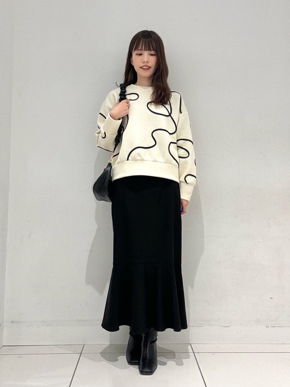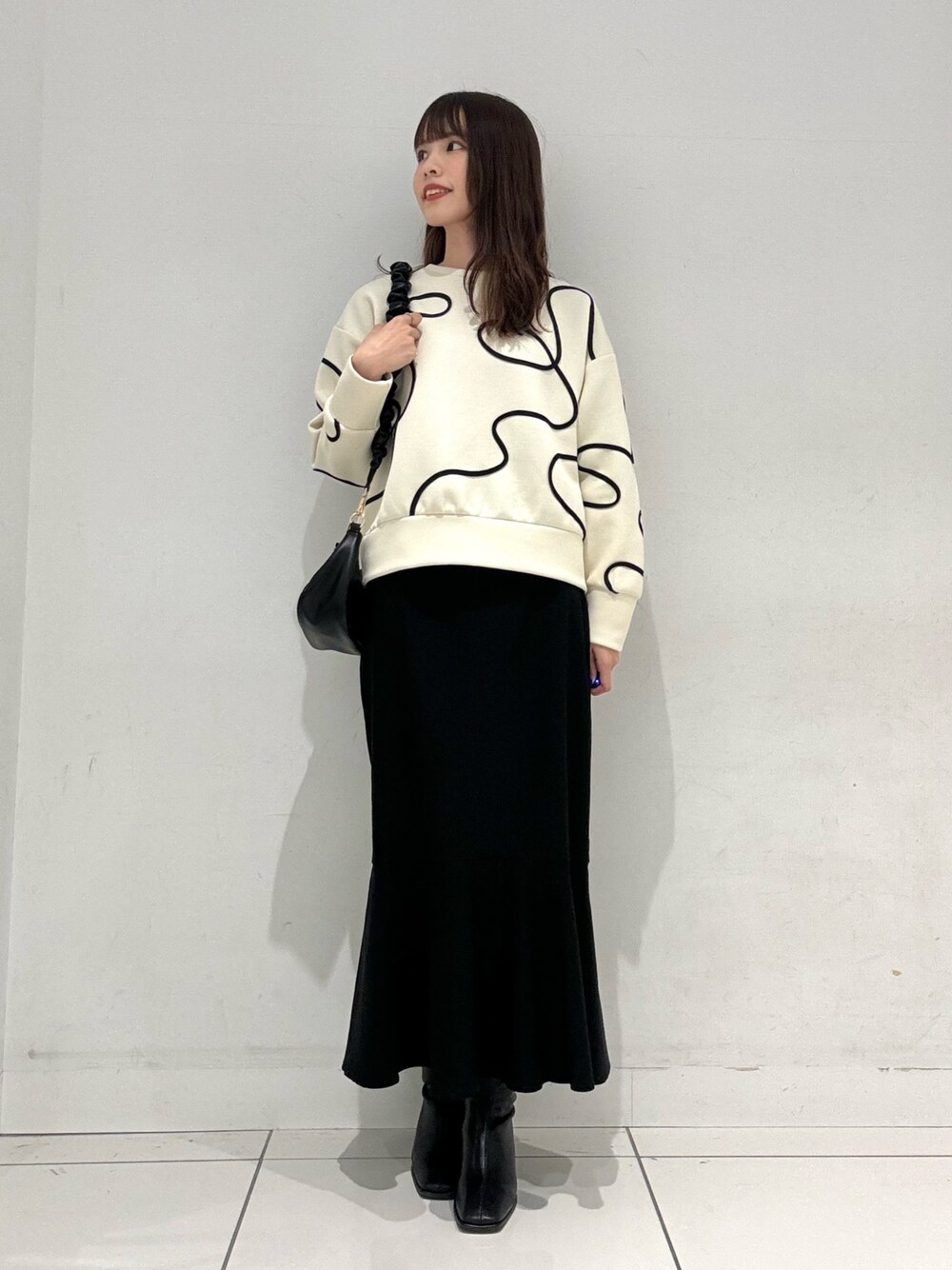 デザインのあるトップスには、シンプルなボトムで合わせるのがオススメです◉
