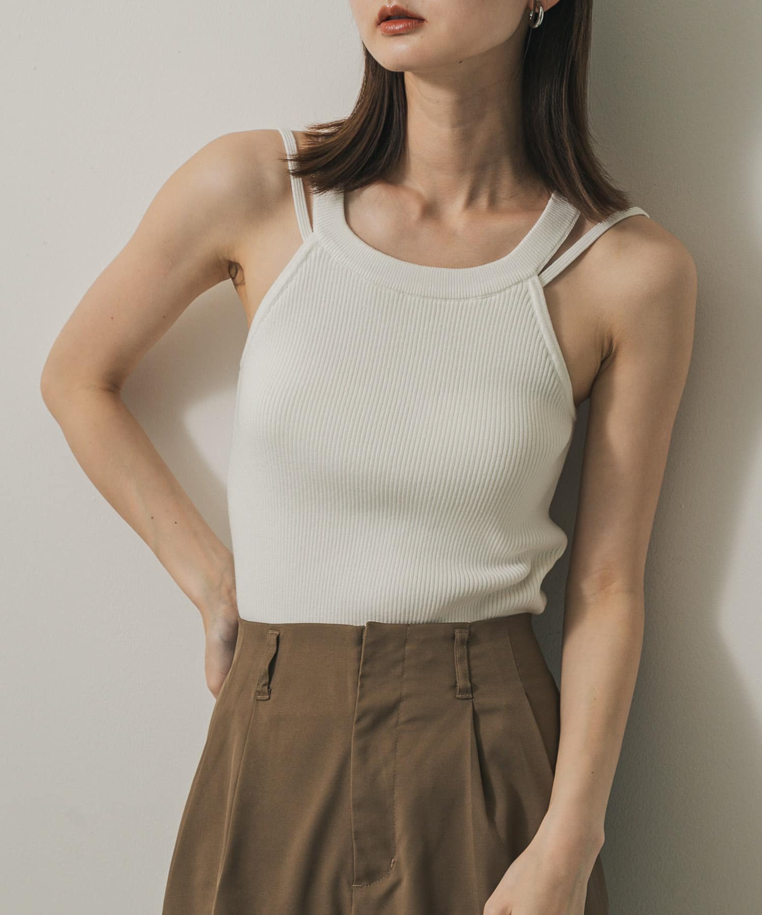 SENSE OF PLACEダブルストラップカップツキニットタンク