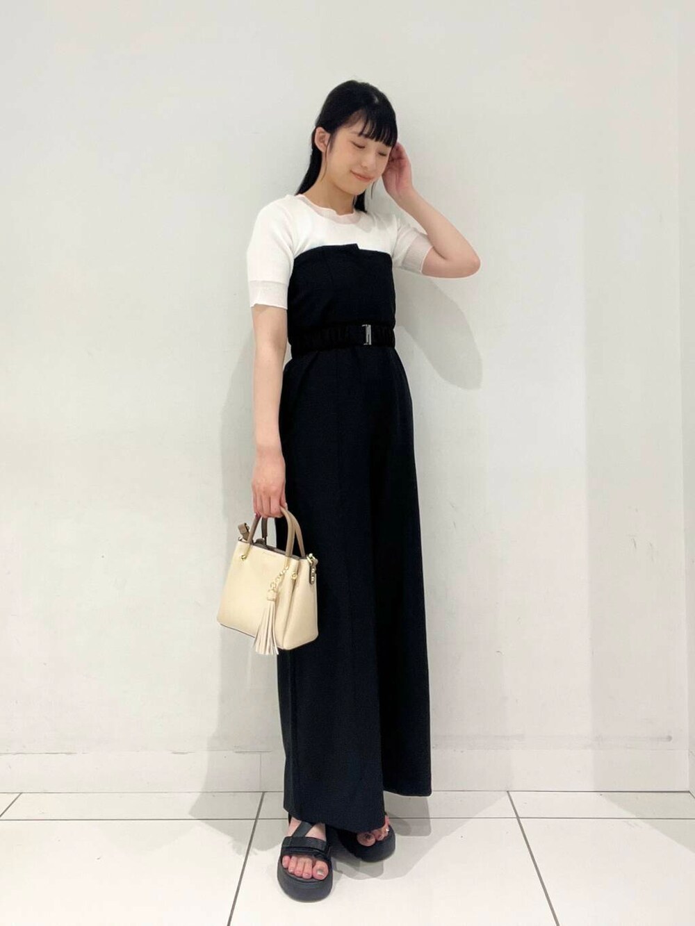 トップスは襟元・袖口がシアーで上品さを感じさせてくれるデザインです✨️
